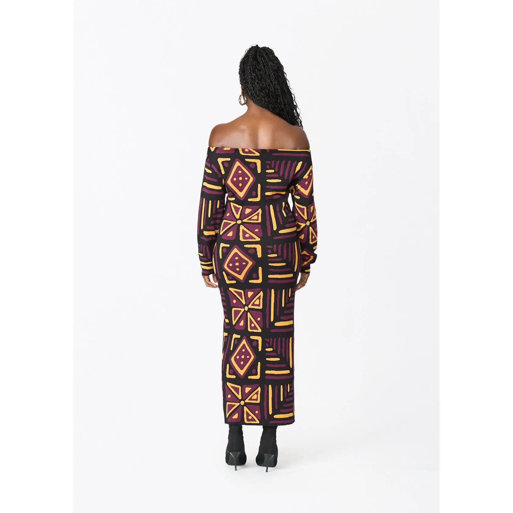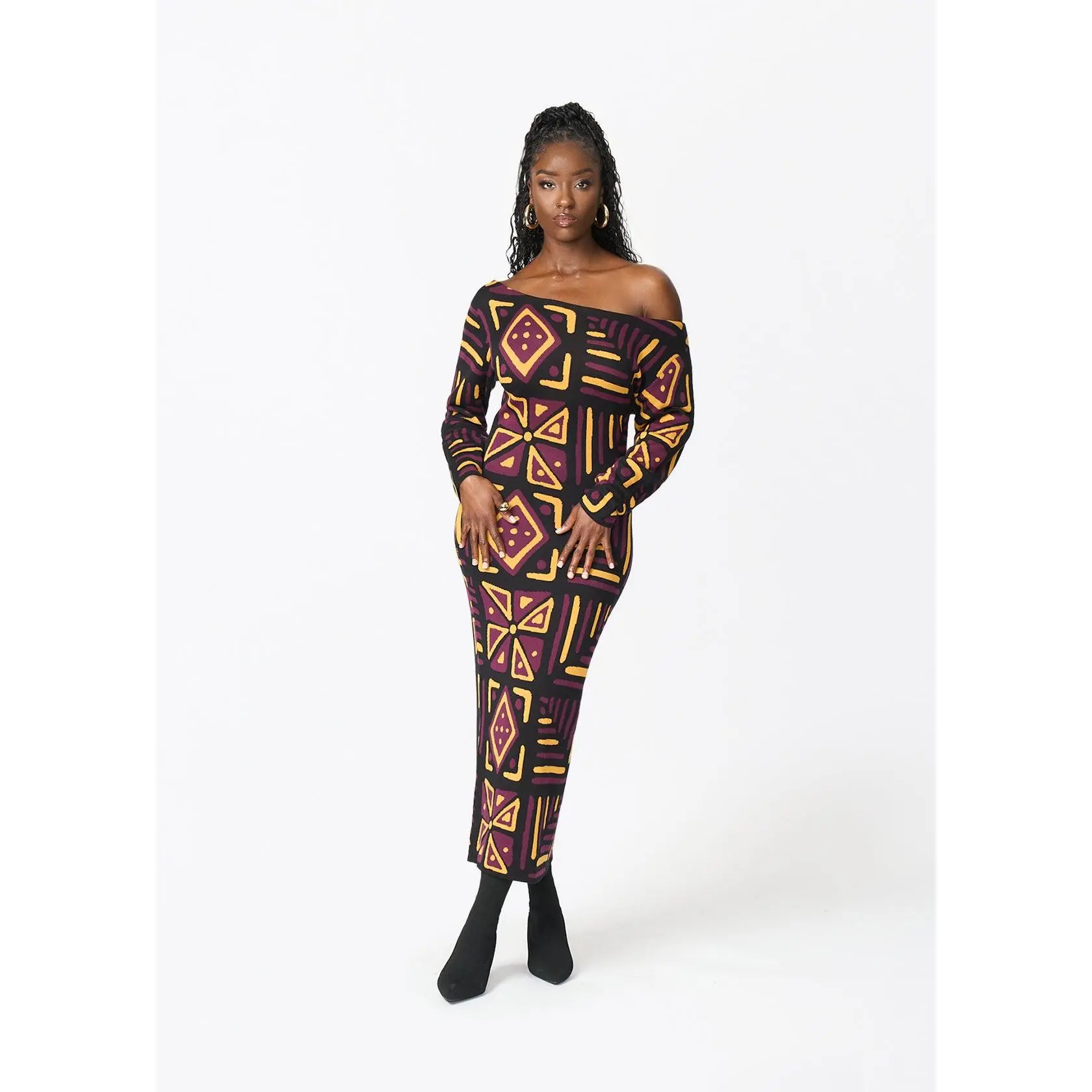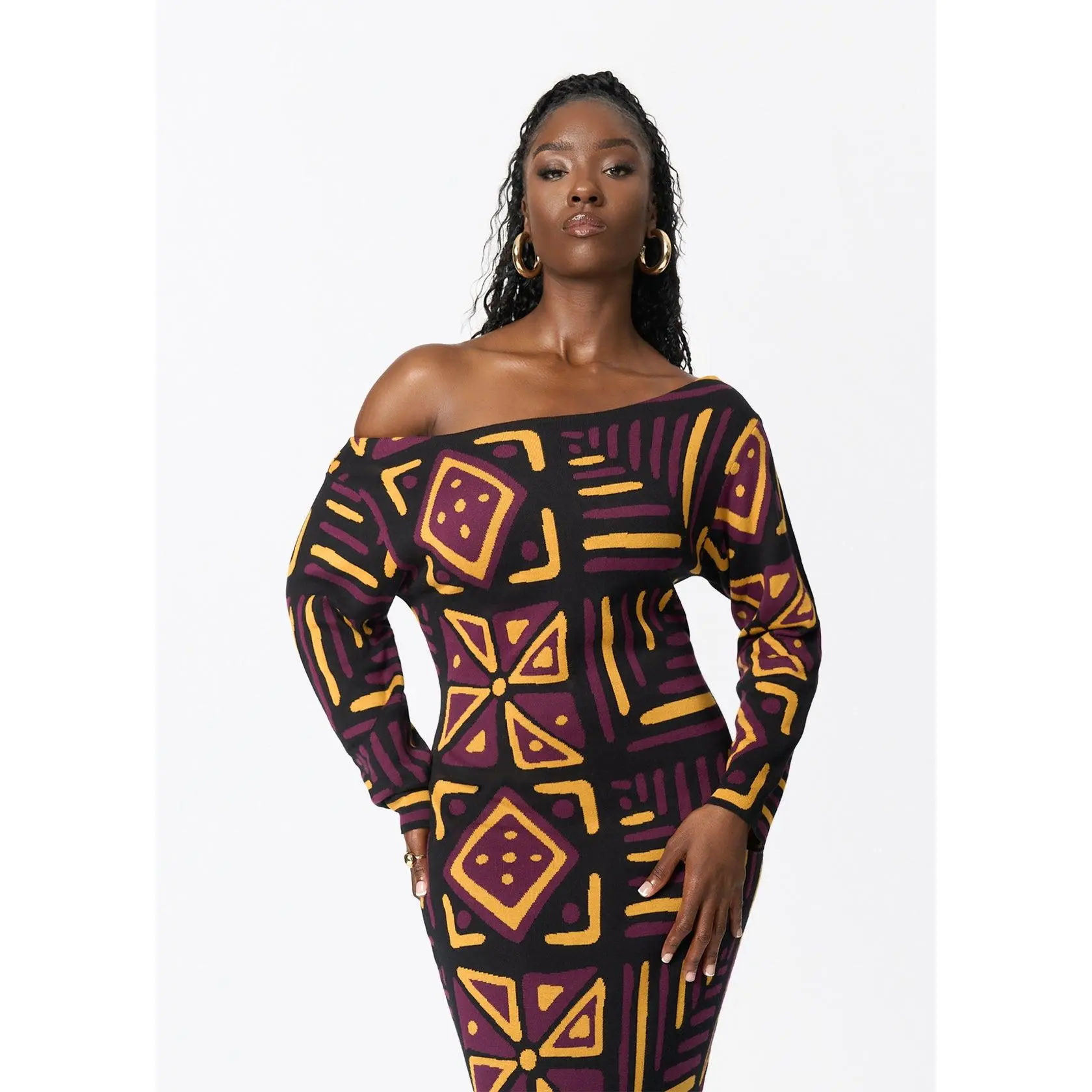 Cozy and chic, the Ladi sweater dress will quickly become your favorite dress of the season. And show up with your man in style with the matching men's Iferan sweater in the Plum Black Tribal Print.