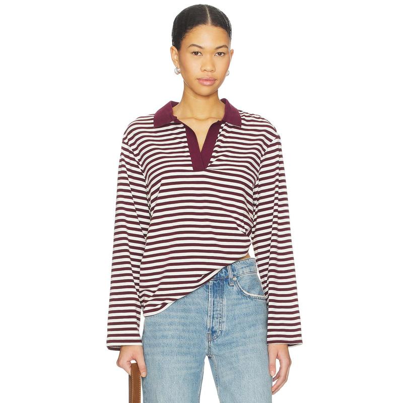 5. SNDYS Banks Polo Top in Cherry Stripe