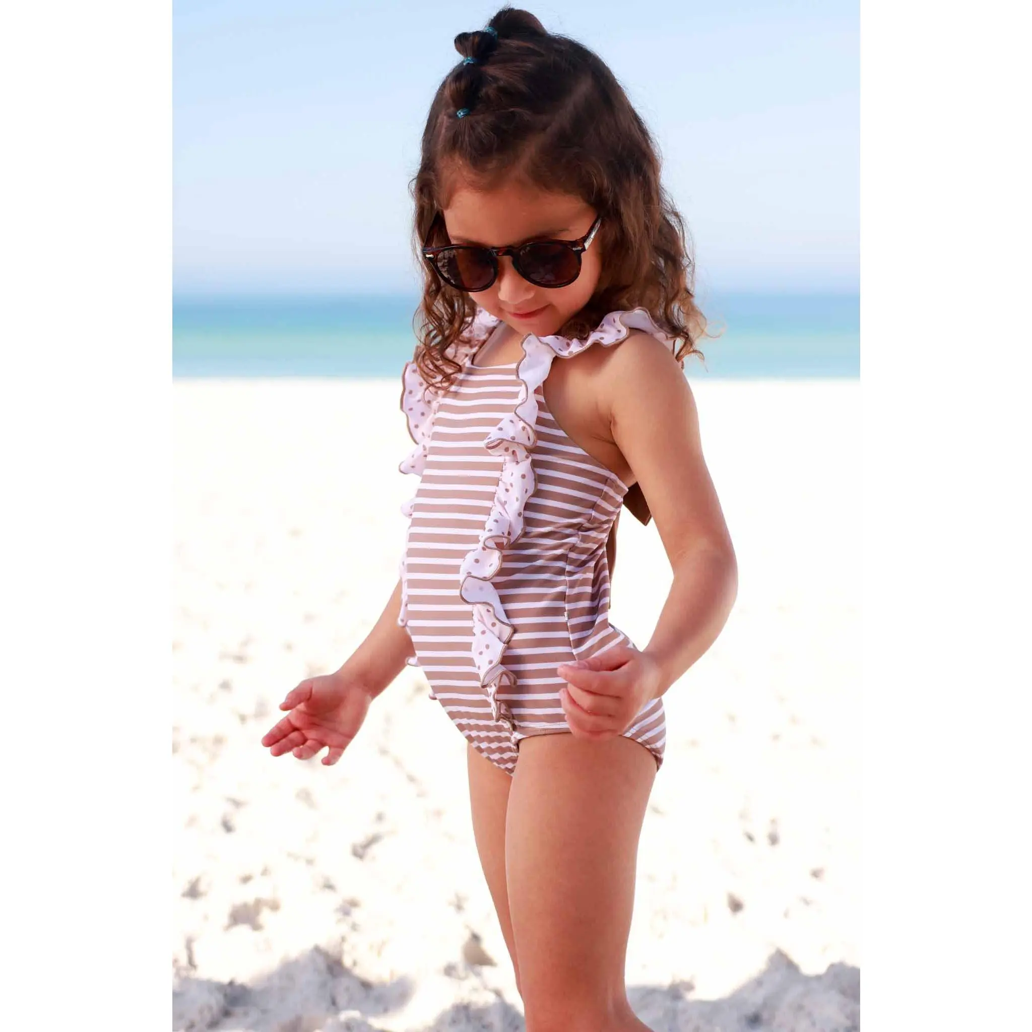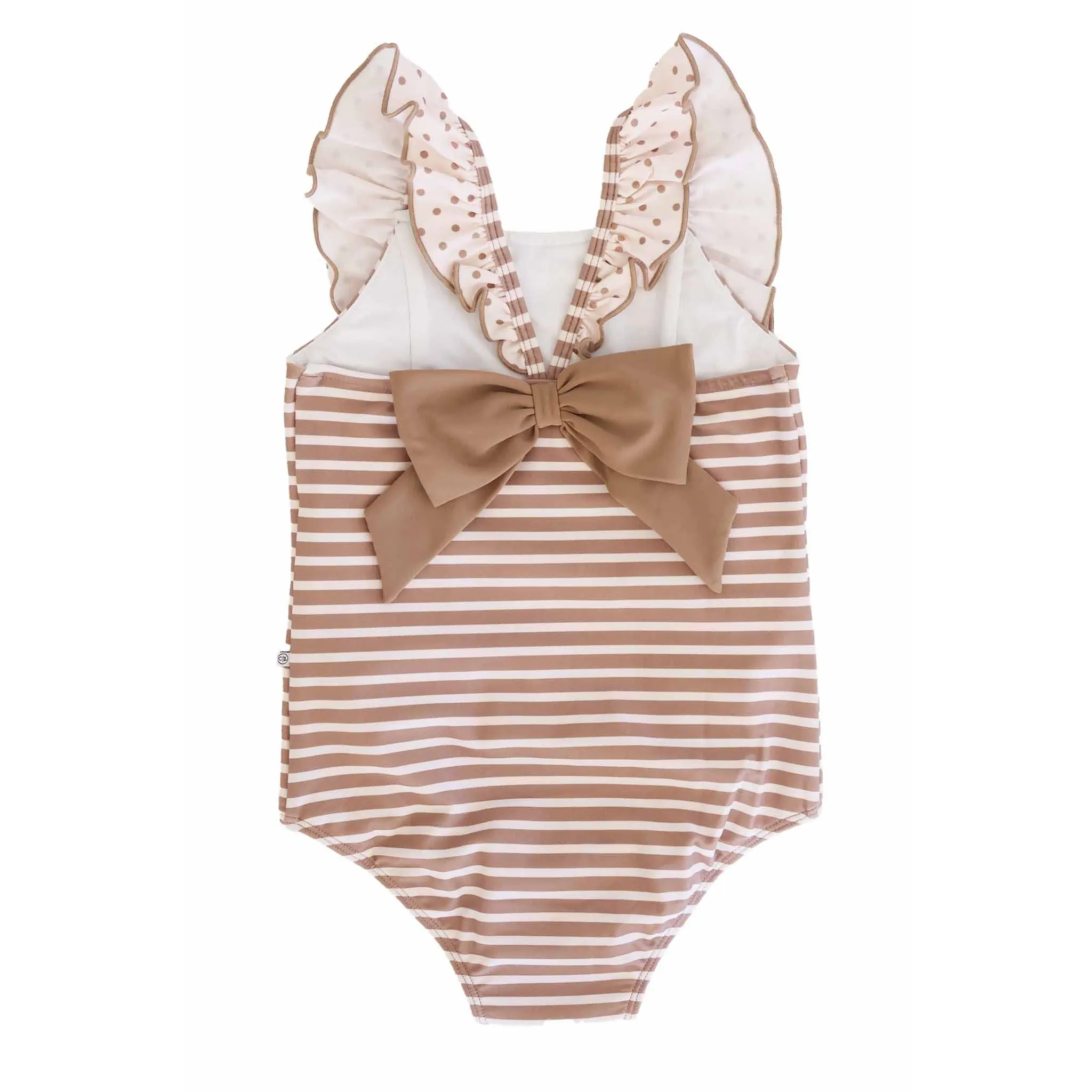 5. Double Ruffle Bow Back One Piece | Sandy Stripes