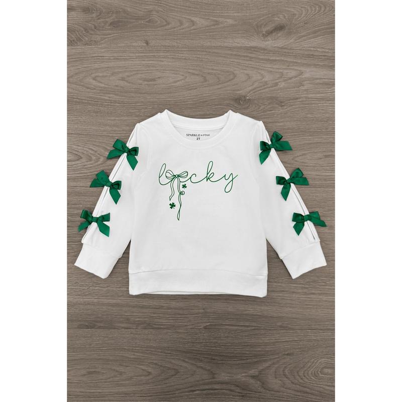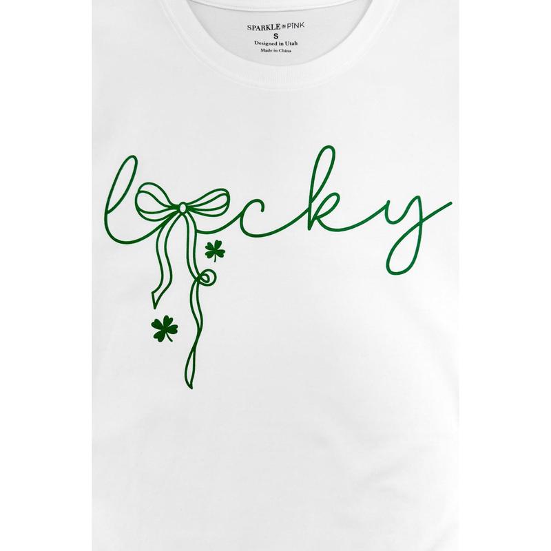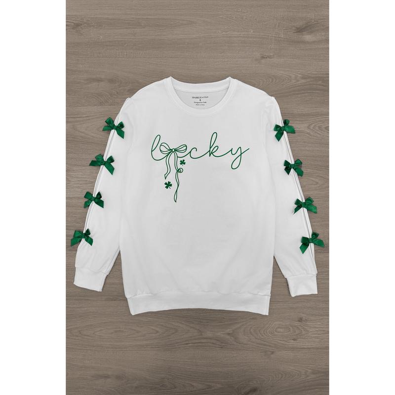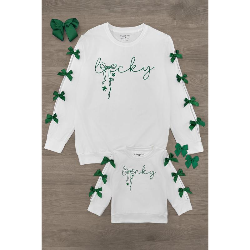 ·Mom & child top features a "Lucky" on the front with bow details down the sleeve