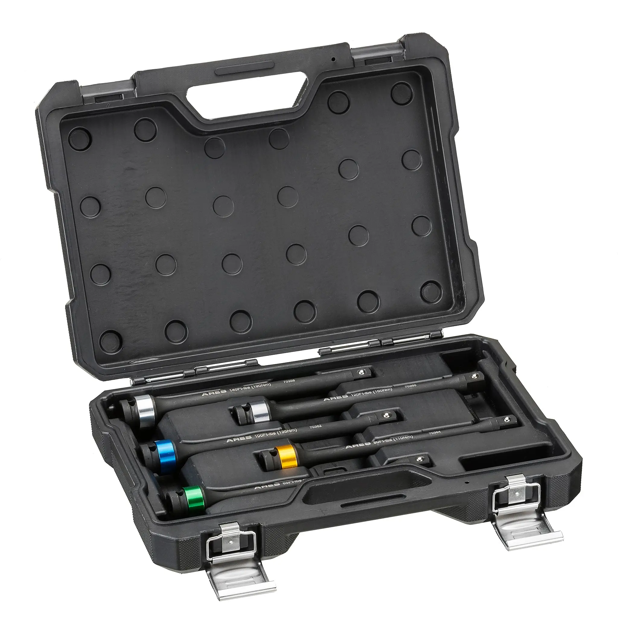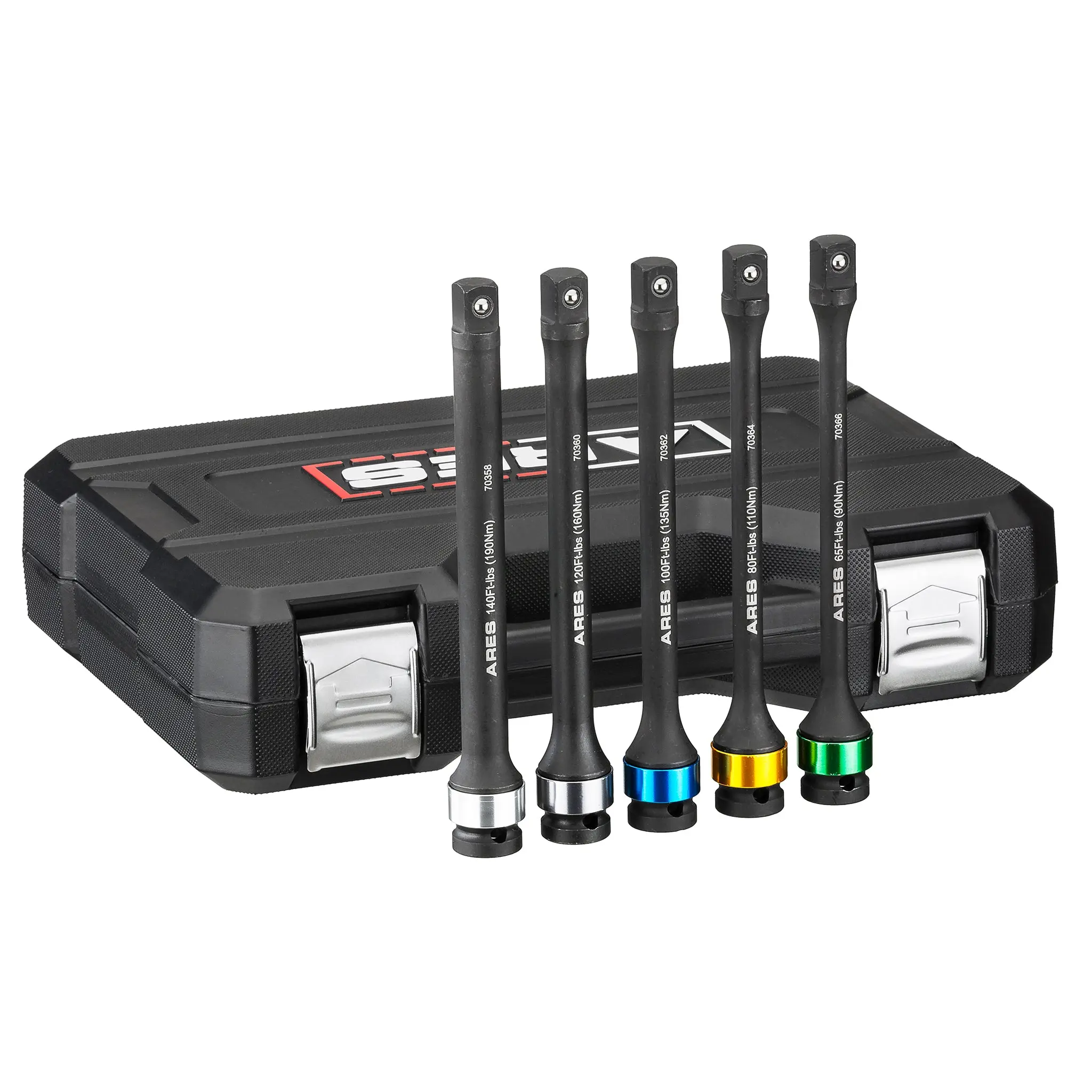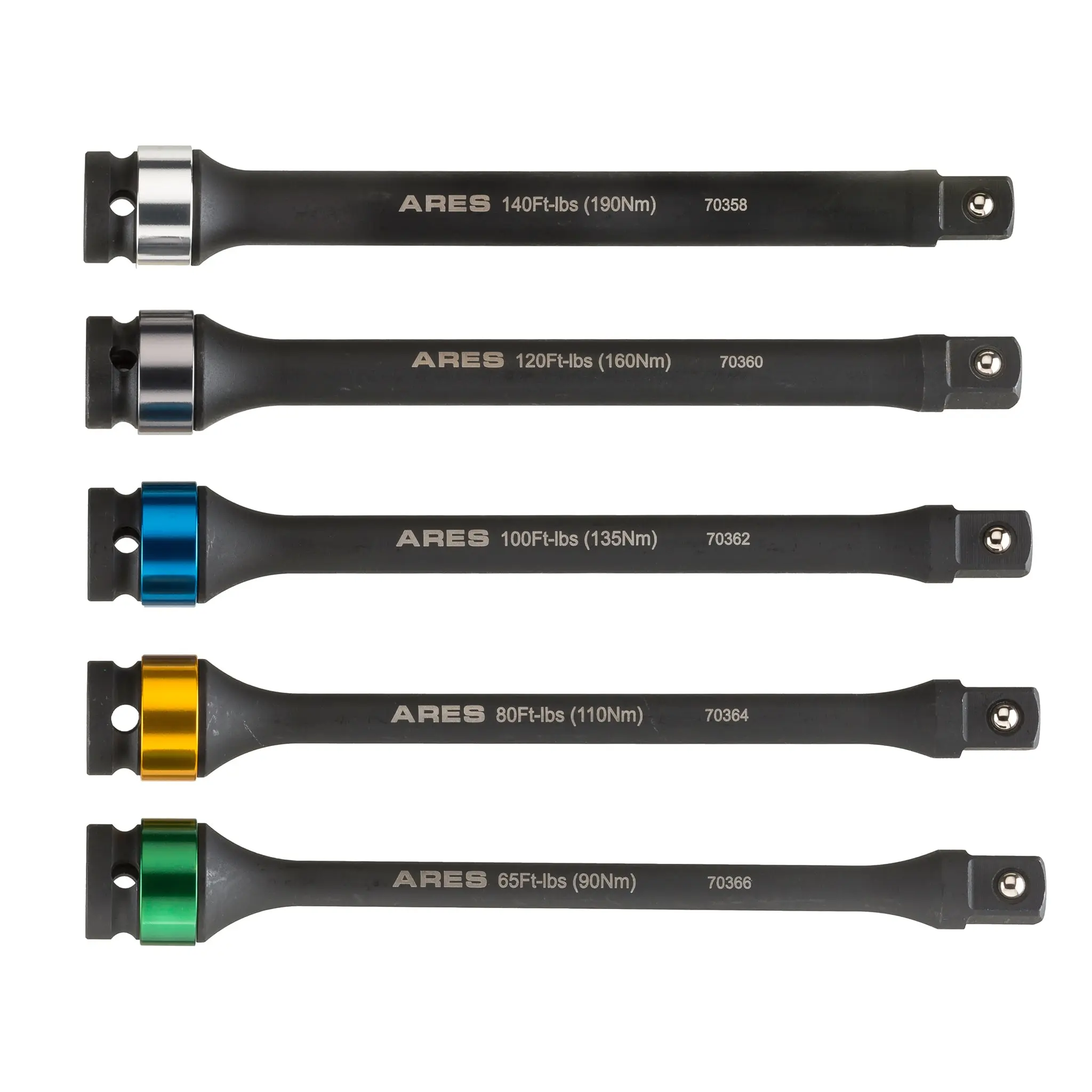 Each ARES Torque Limiting Extension Bar is designed to work with your favorite impact tools to prevent overtightening that can lead to rounded off, sheared, and damaged fasteners. Constructed of Chrome Molybdenum Steel with a corrosion resistant Manganese Phosphate coating, these extension bars limit the effective output of your tools to a certain amount of torque by flexing to absorb additional impact, so you'll never have to worry about the damage extra torque can cause. And thanks to their color-coded rings, you'll always be able to find the right one quickly when you need it.