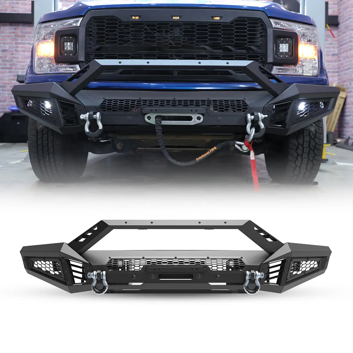 Upgrade your Ford F-150 with the WOLFSTORM Front Bumper designed specifically for 2018, 2019, and 2020 models (excluding Raptor). This heavy-duty steel bumper is built to withstand off-road adventures and protect your vehicle from collisions.