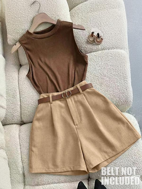 Women's 2-Piece Plain Casual Sleeveless Top and Straight Shorts Set, Slim Fit Summer for Stylish ComfortWomen's 2-Piece Plain Casual Sleeveless Top and Straight Shorts Set, Slim Fit Summer for Stylish ComfortWomen's 2-Piece Plain Casual Sleeveless Top and Straight Shorts Set, Slim Fit Summer for Stylish ComfortWomen's 2-Piece Plain Casual Sleeveless Top and Straight Shorts Set, Slim Fit Summer for Stylish ComfortWomen's 2-Piece Plain Casual Sleeveless Top and Straight Shorts Set, Slim Fit Summer for Stylish Comfort