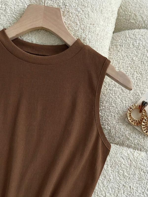 Women's 2-Piece Plain Casual Sleeveless Top and Straight Shorts Set, Slim Fit Summer for Stylish Comfort