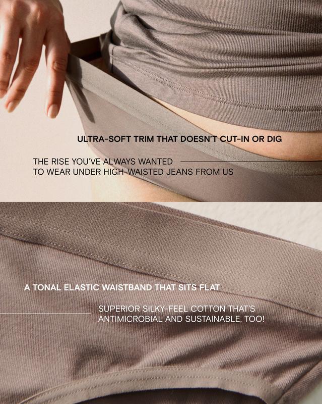 We made the unsung wardrobe heroes you've been missing. The best basics—underwear, perfected. This classic mid-rise bikini is supremely comfortable. With a tonal elastic band and soft trim that won't dig, it's made from antimicrobial jersey fabric blended with modal for a super smooth, light-as-air feel and a second-skin fit (like they're barely there). You shouldn't have to think about underwear—leave that to US. We've thoughtfully perfected these so that you'll forget you've even got them on.