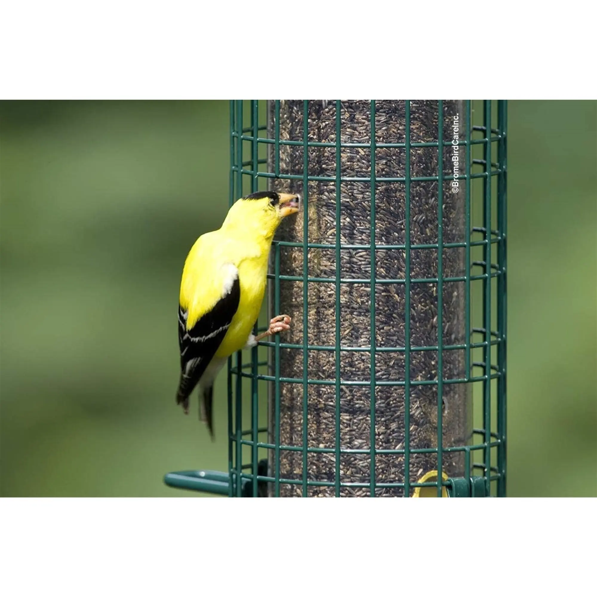 Enjoy worry-free birdwatching with the Brome Squirrel Buster Finch Feeder, specially designed to keep squirrels out while attracting flocks of lively finches. With a 2.4 lb Nyjer/thistle seed capacity, this feeder offers plenty of food for goldfinches, house finches, siskins, and redpolls. The 4 seed ports on the upperhalf of the Squirrel Buster Finch Feeder provide a surface area for clinging, whilethe 4 seed ports on the lower half of the feeder provide 4 perches forperching. This feeder prevents squirrels from eating your seed, scaringthe birds, and damaging your feeder. You will find a great amount of activity asthe birds move from perching to clinging as they compete for a feedingposition. Hang it anywhere without tools and enjoy close-up views of your favorite birds without the hassle of squirrels.