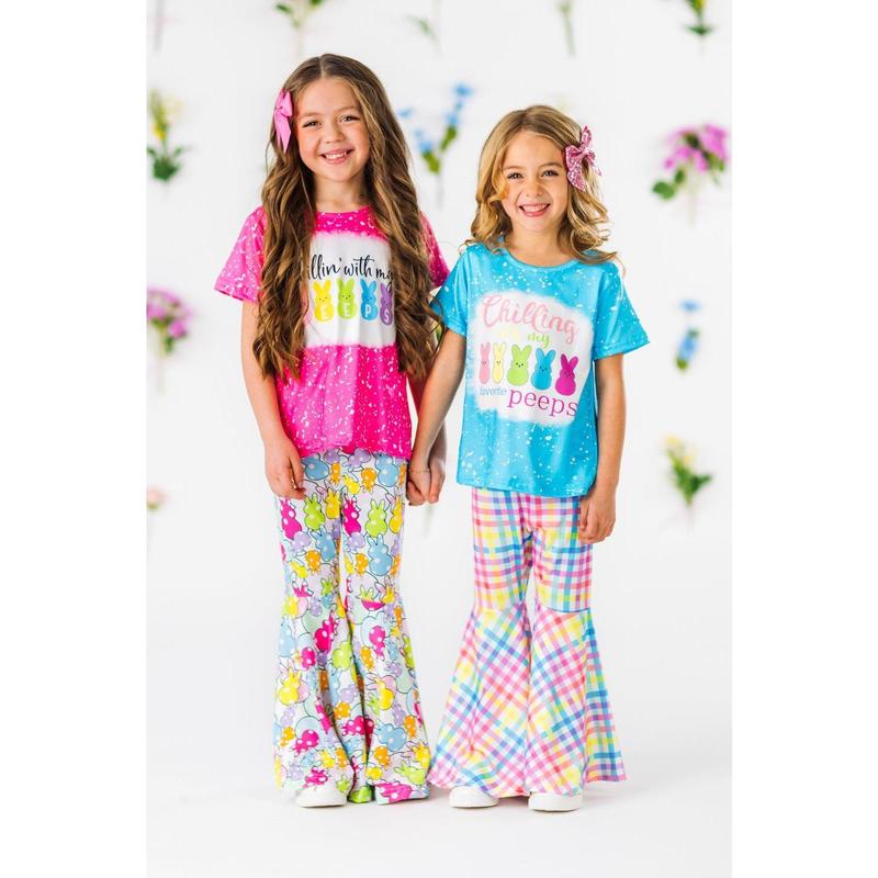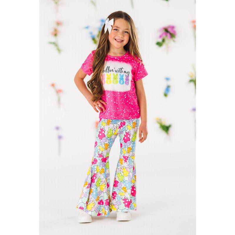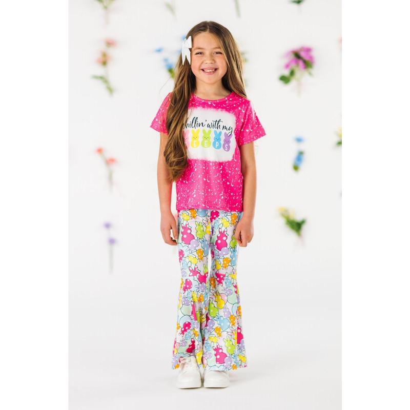 Your little one will look so adorable in our "Chillin' With My Peeps" Pink Bell Bottom Set for girls. This short sleeve top looks adorable paired with the matching bell bottoms. The stretchy waistband helps comfort and fit and can be great for on the go, while the colorful peep design adds a fun pop to her look. The top and bottoms can be worn as a set and paired with our matching bows or keep it laid back with a pair of sandals, she’ll shine bright in this kids ensemble.