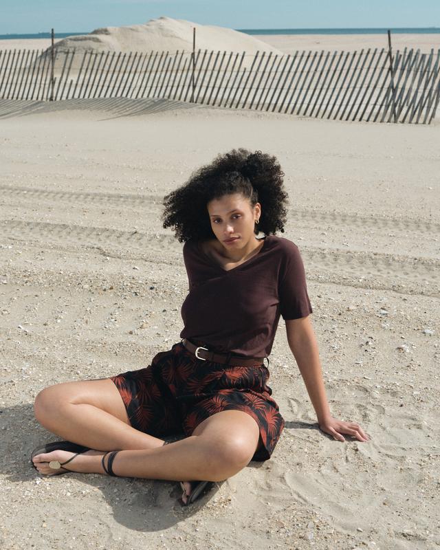 Our signature V Rex in a new light-as-air fabric. Tissue-like and totally nostalgic, light-as-air cotton is semi-sheer and fun to wear on its own or layer with other essentials. Soft and lightweight, it feels like a well-worn tee you’ve already loved for years and years. Carefully crafted for an impeccable fit, the V Rex features short sleeves, a strategically curved hem, and a length that's not too long and not too short.