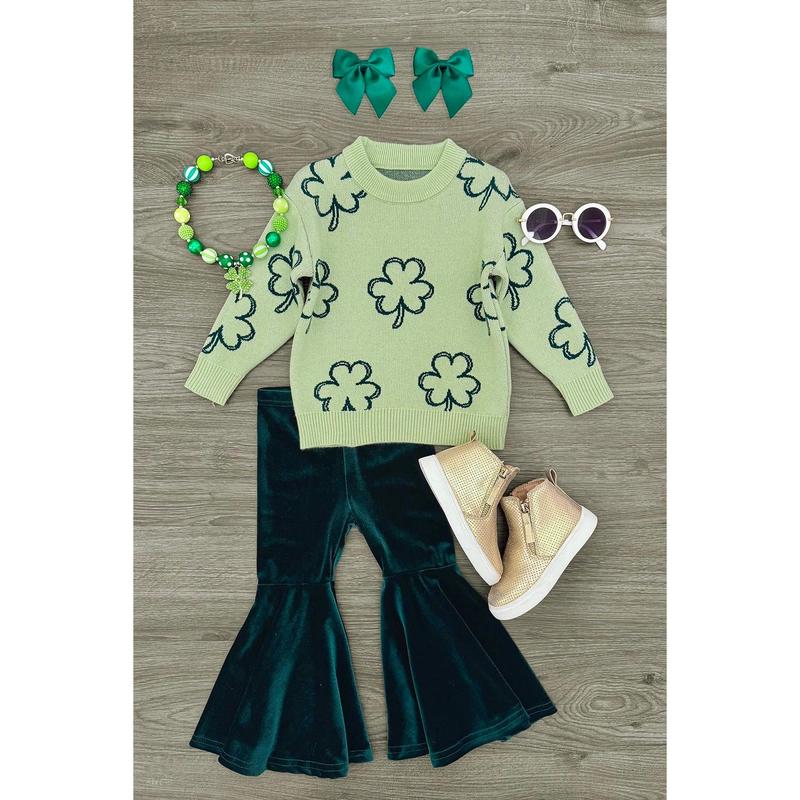 5. Shamrock Sweater Velvet Bell Bottom Set