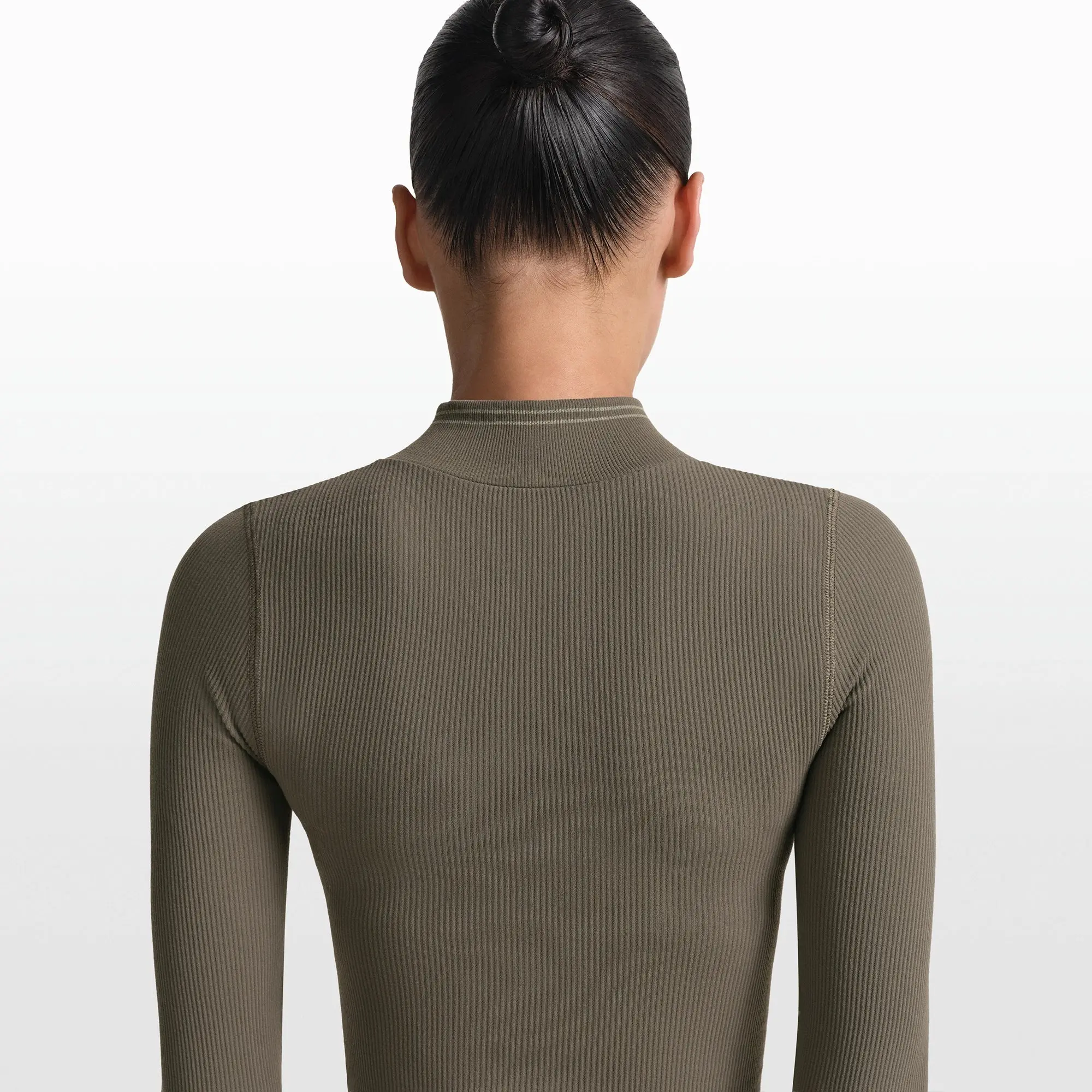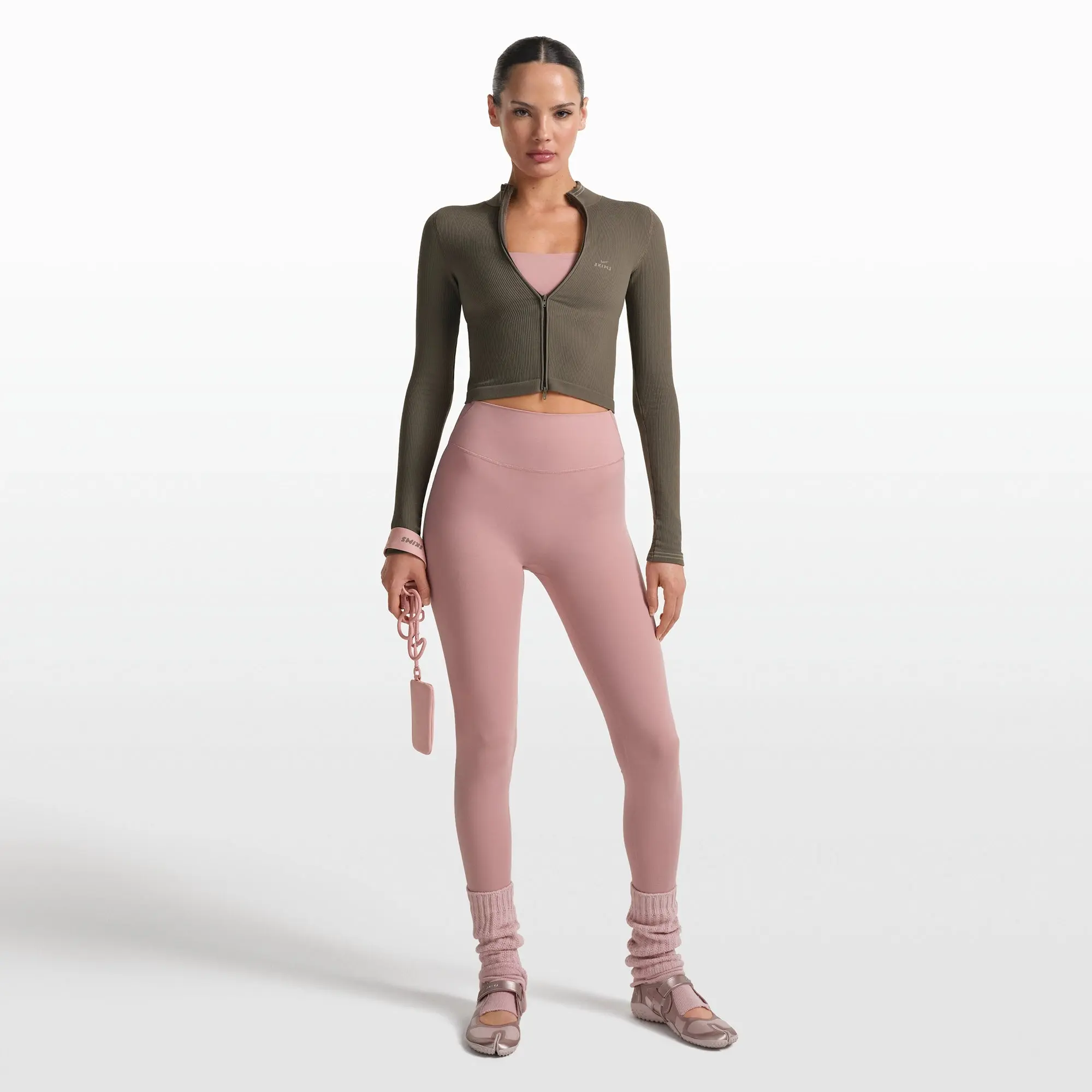 NikeSKIMS RIBBED SEAMLESS ZIP UP CROP JACKET | DUSTY OAKMOSS