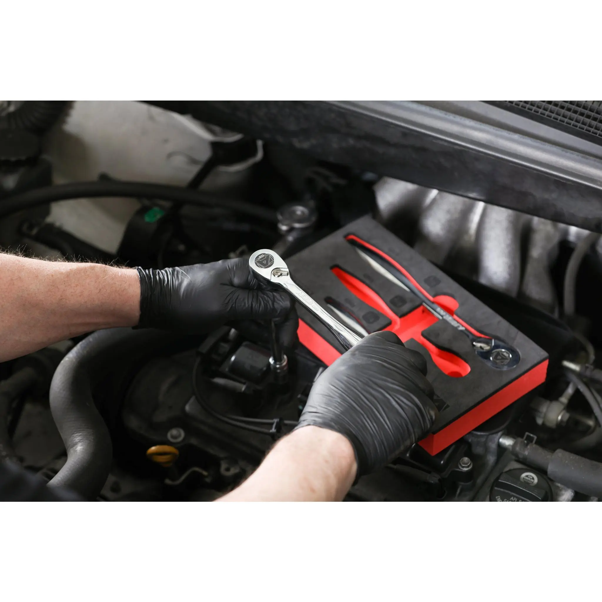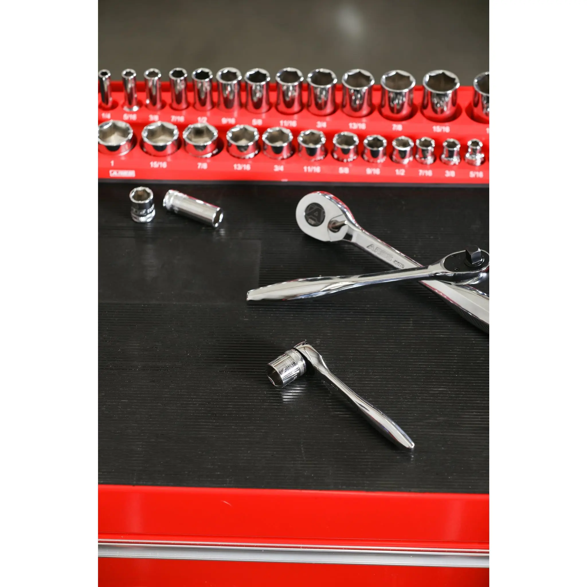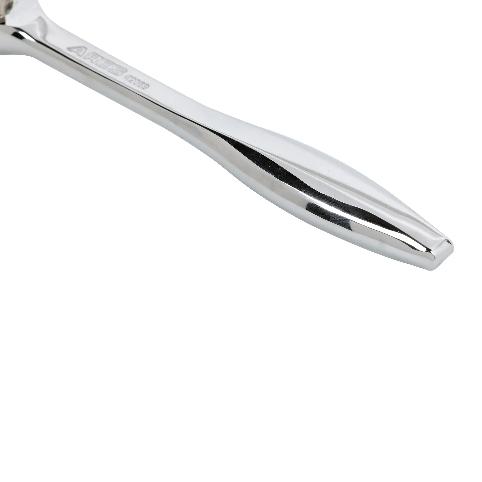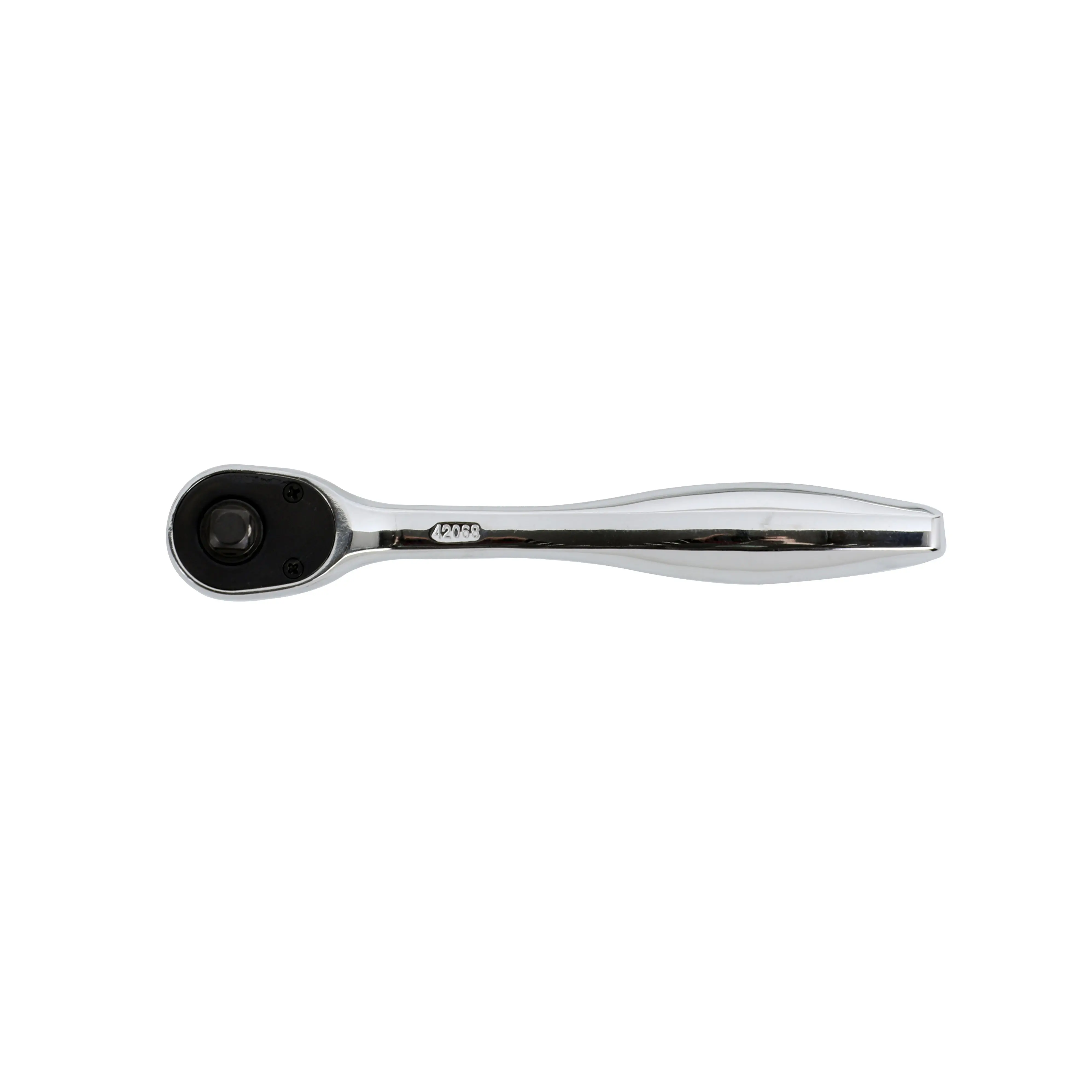 The ARES 1/4-Inch Drive 120 Tooth Ratchet needs just 3 degrees sweep for ratcheting action, so it's perfect for close quarters work in tight spots. Made of chrome vanadium steel with a mirror polish finish and featuring a professional gear to gear pawl structure for increased durability, this ratchet is built to last alongside your toughest tools. Thanks to the thumb switch on the back of the ratchet head, you can easily change direction, going from tightening to loosening and back again totally hassle-free. Plus, the contour forged handle makes this ratchet comfortable in the hand, reducing hand tension during use and increasing leverage to give your ratcheting an extra kick.