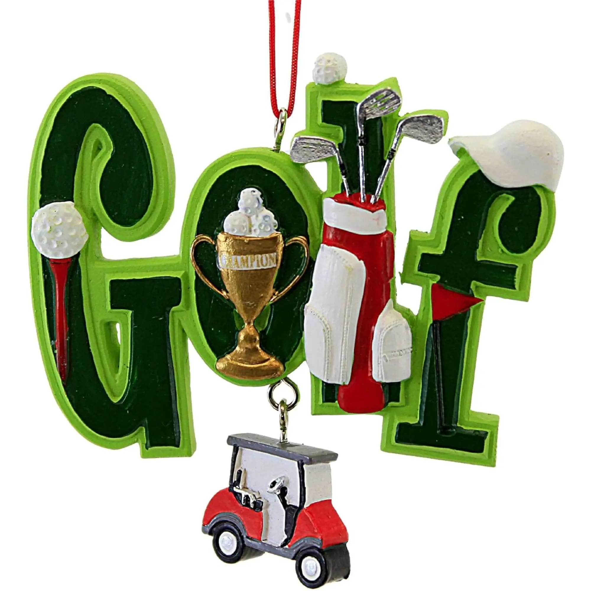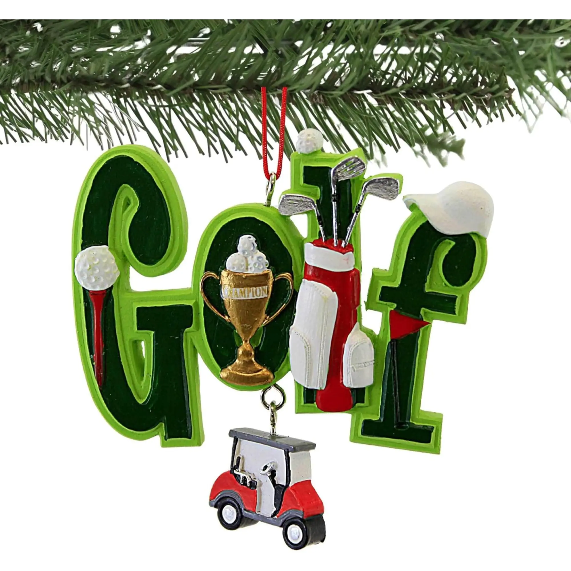 ·Celebrate Your Love of Golf: This ornament features the words "golf" with a golf cart dangling from it