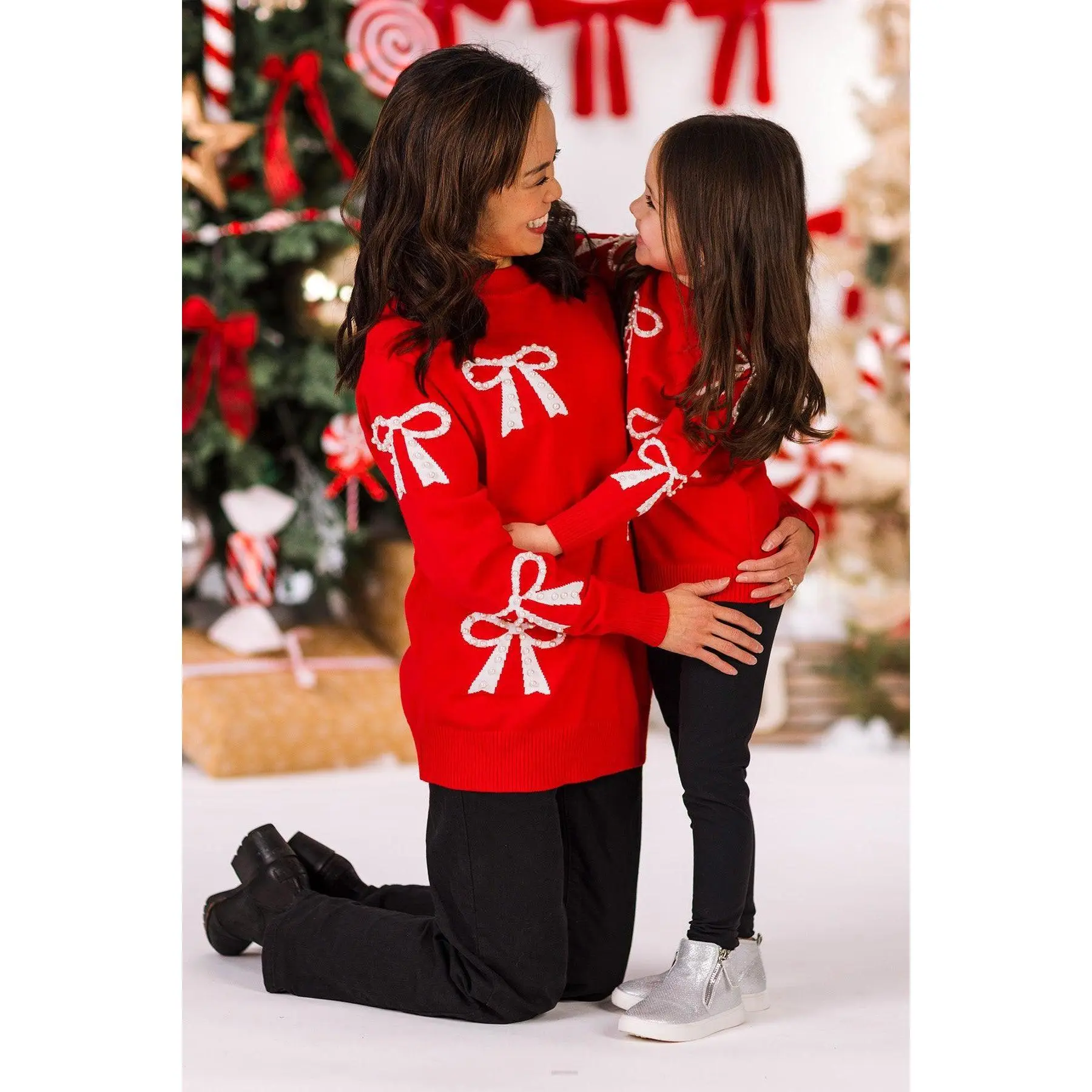 ·Mommy and me red bow sweater