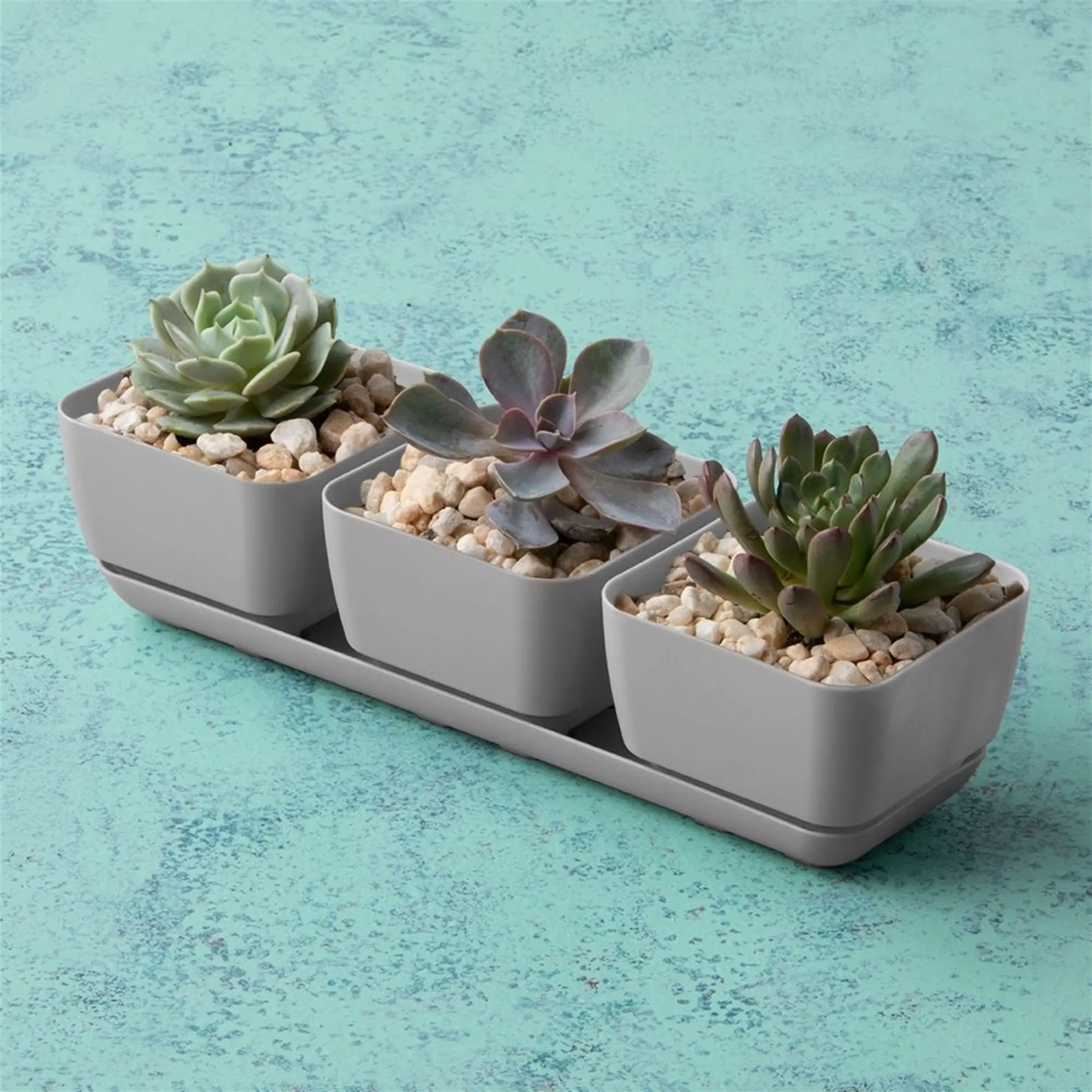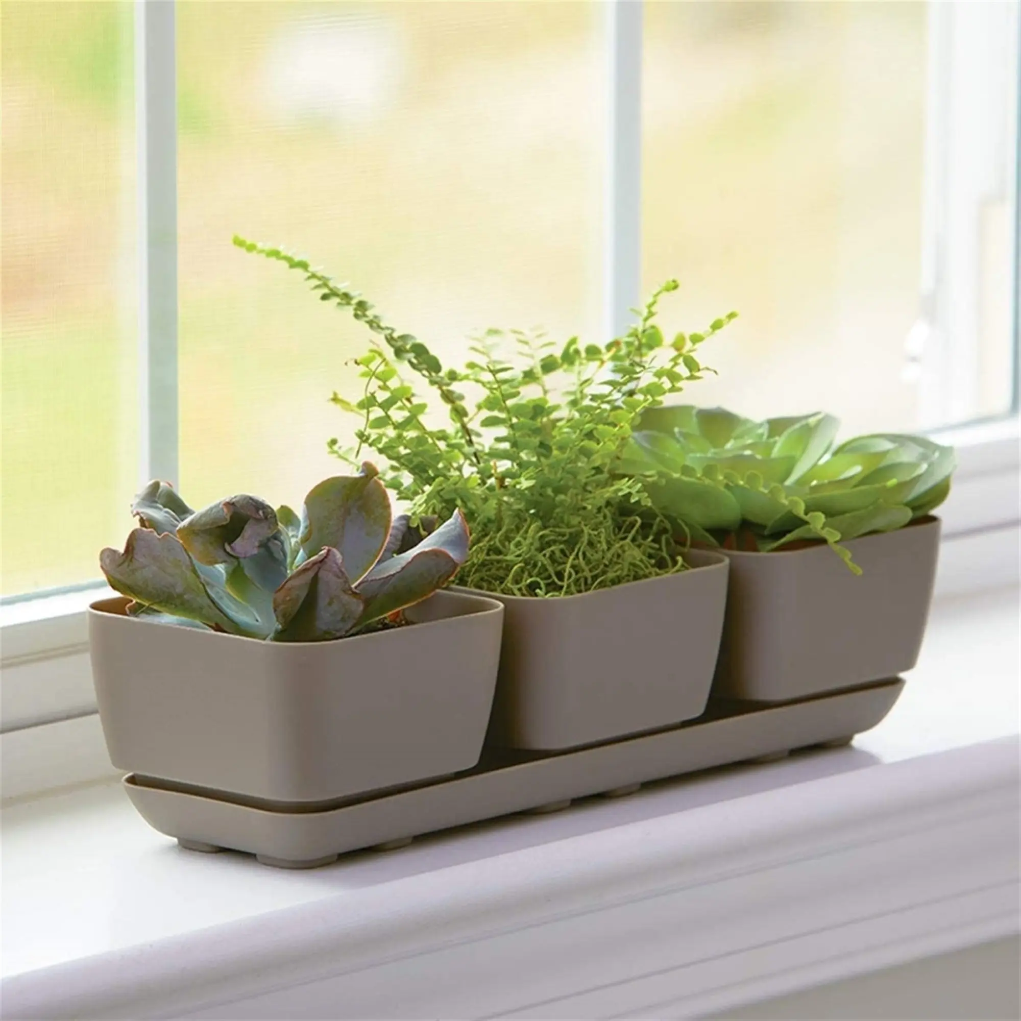 Novelty Herb & Succulent Trio Planter Plastic Flower Pots, 12"