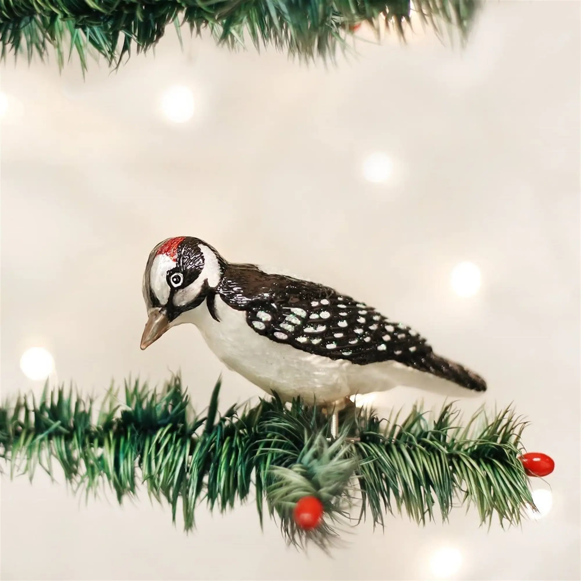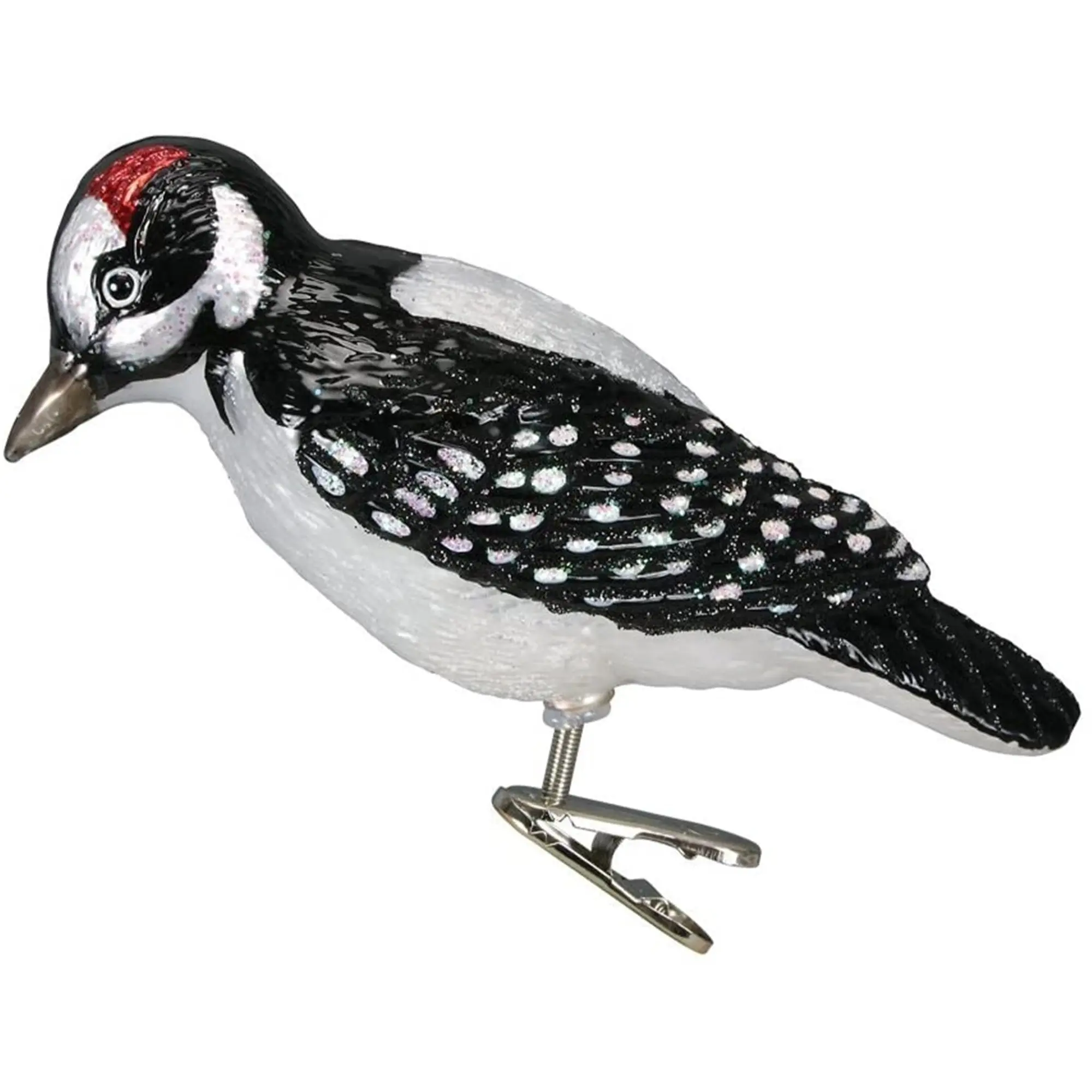 Old World Christmas Blown Glass Clip-On Ornament for Christmas Tree, Hairy Woodpecker
