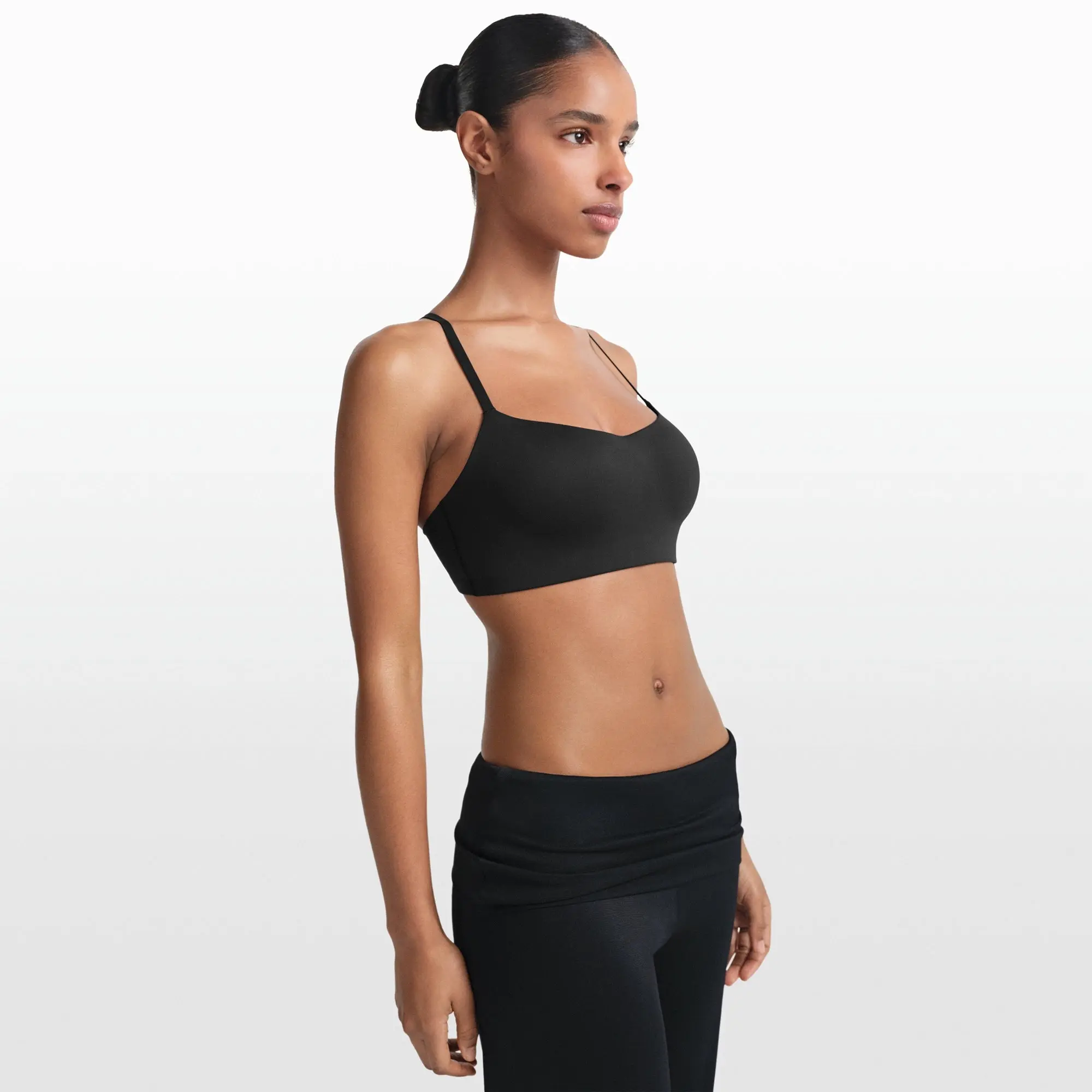 Designed with our sculpting Matte fabric, this bra lifts and enhances with wireless contoured pads for light support. Sweat-wicking Nike Dri-FIT™ technology and adjustable straps make this a studio essential you can wear anywhere.