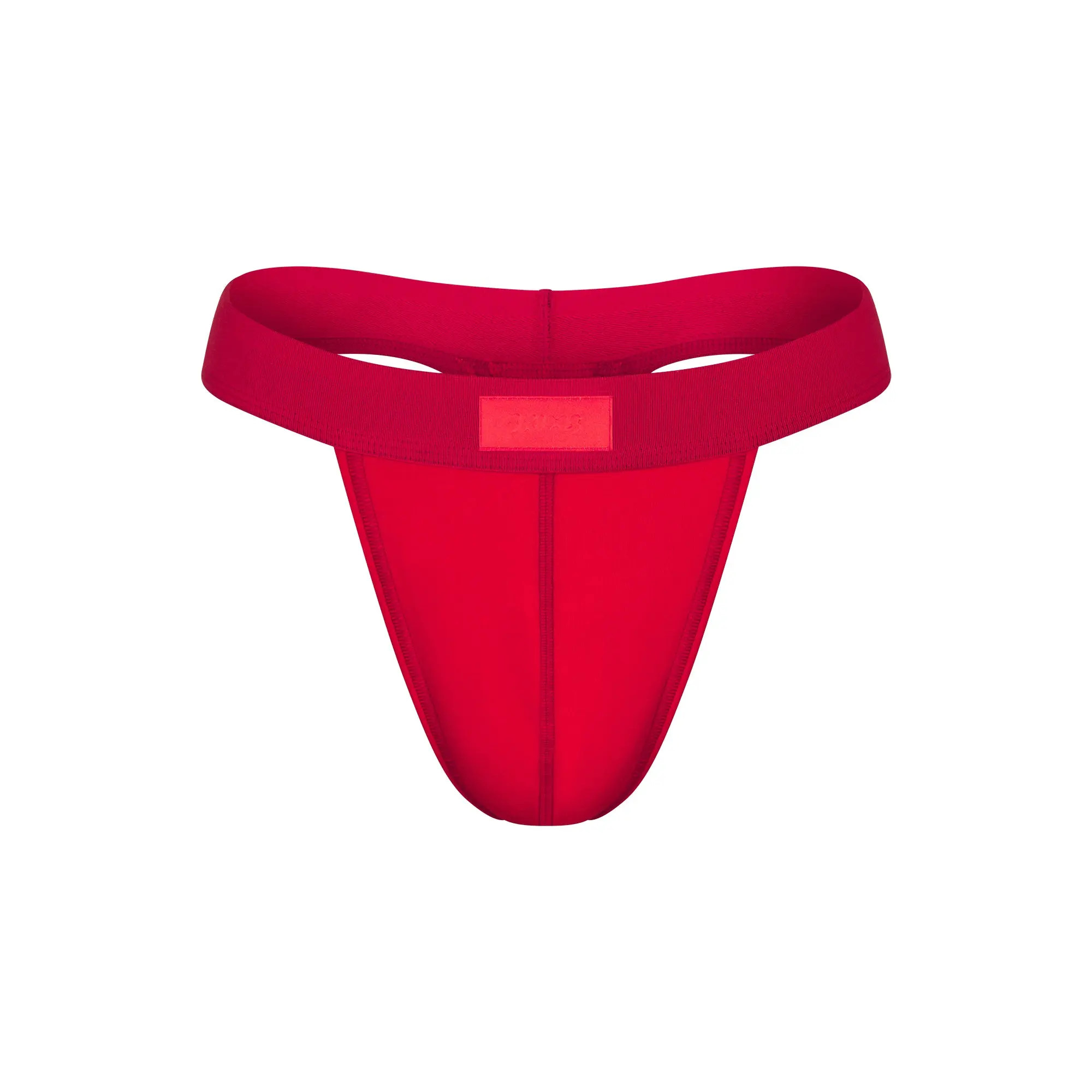 Ultra-soft with a second-skin feel, this men’s thong is comfortable for all-day wear. Designed with excellent recovery and stretch so the cooling fabric never loses its shape. Engineered with an enhanced pouch for support. Features an elastic waistband with jacquard SKIMS logo. Fits true to size.