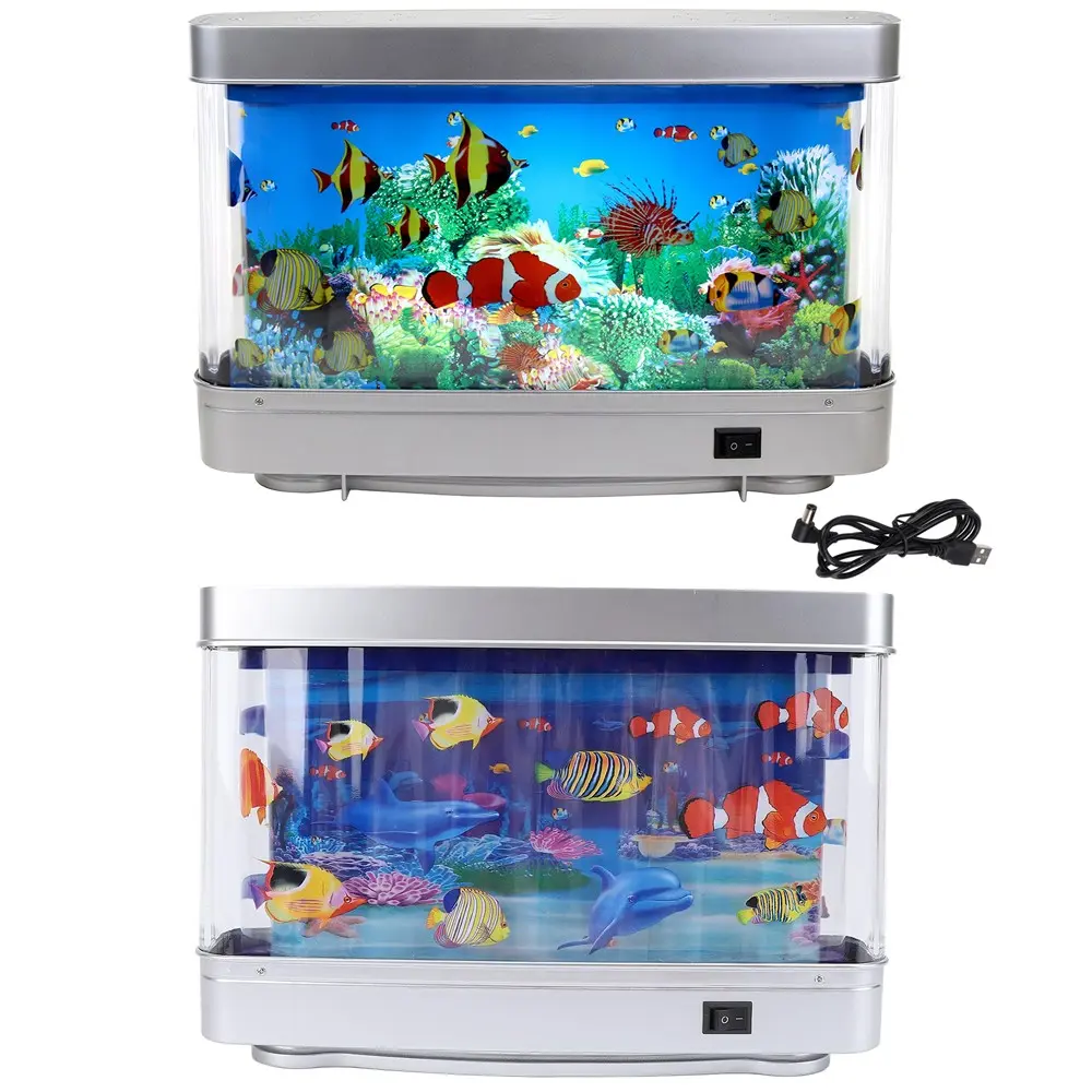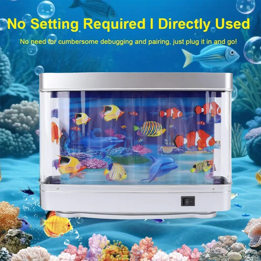 Adjustable LED Aquarium Light with Dynamic Fish Shadows, Aquarium Sensory Lamp, with Wall Shelf Display, Ocean Scene Decor Lamp for Bedroom, Living Room, Office, Aquarium Decor, Office Relax, Oceanthemed Lighting, Switch Control Lighting