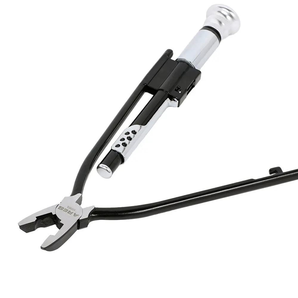 The ARES 9-Inch Reversible Safety Wire Twister Pliers allow you to quickly, safely, and easily grip, twist, and cut stainless steel safety wire. With an automatic spring-loaded heavy duty return and chromed retainer slide, these pliers make twisting safety wire an easy task. Thanks to the tapered jaws, these pliers are easy to use in tight spots, and the mated cutters mean that making precise cuts is a snap. These pliers are suitable for an almost endless variety of tasks, including securing nuts and bolts with safety wire, wire wrapping or metalwork, securing tie bolts on a brake rotor, and more.