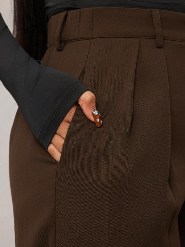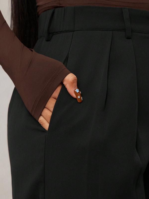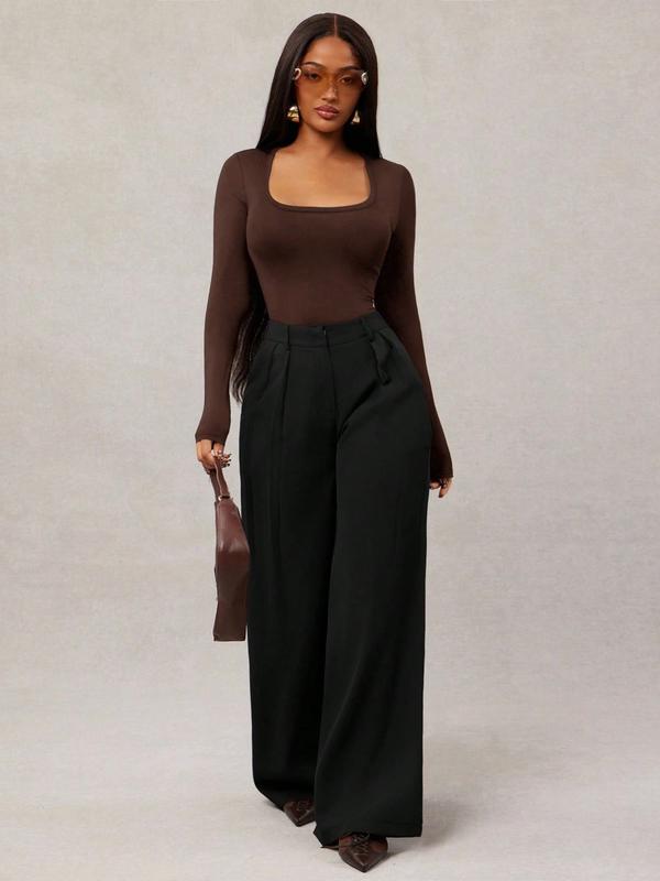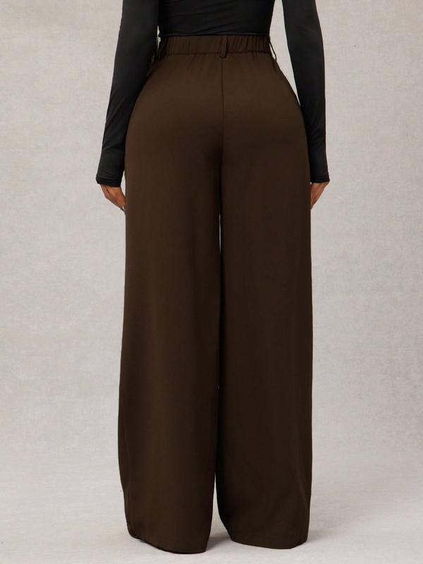 Women's Minimalist Style Fashion Wide Leg Pants, High Waist Elastic Waistband, Commuter & Casual Wear, Comfortable Daily