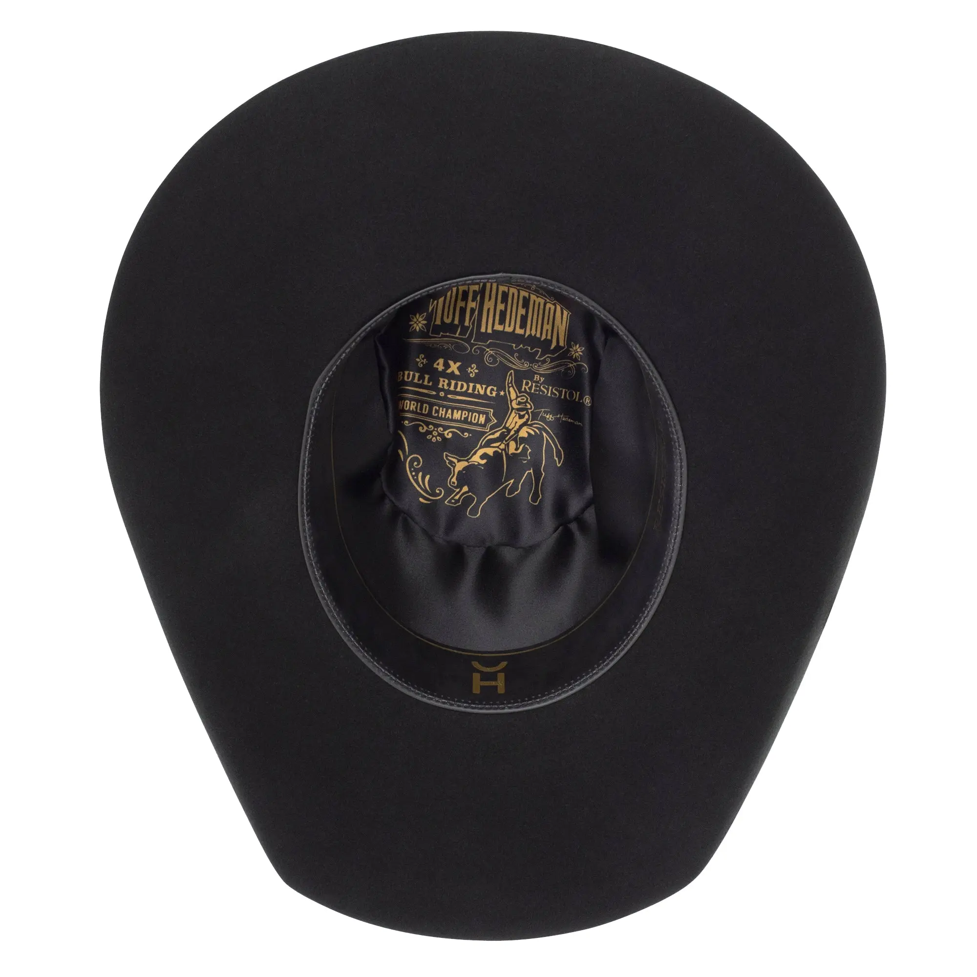 Resistol’s 3X Pay Window Cowboy Hat is as sweet as money in the bank. Part of our Tuff Hedeman Collection, this black 3X wool hat has a 5 1/4" rounded brick crown, a 4 1/4" brim, and a leather sweatband for riding comfort. Put the 3X Pay Window on your head and get your eight seconds.