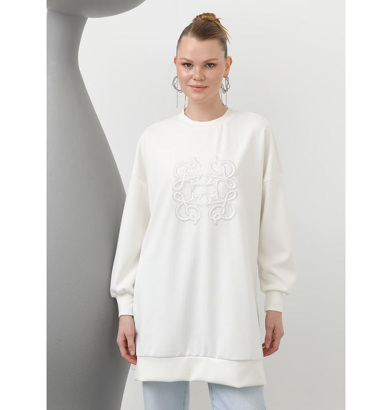 Modest Muslim Women's Modal Blend Embroidered Sweater - 10612 Ecru