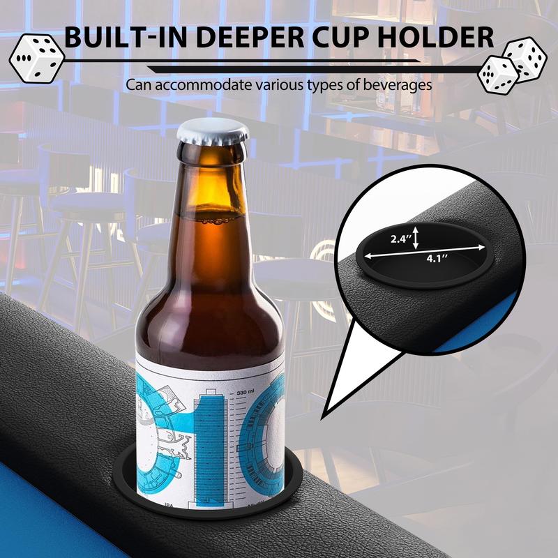 · Comfort and Convenience: Equipped with 8 deep cup holders to securely hold drinks and prevent spills, along with faux leather padded armrests that provide superior comfort during extended gaming sessions