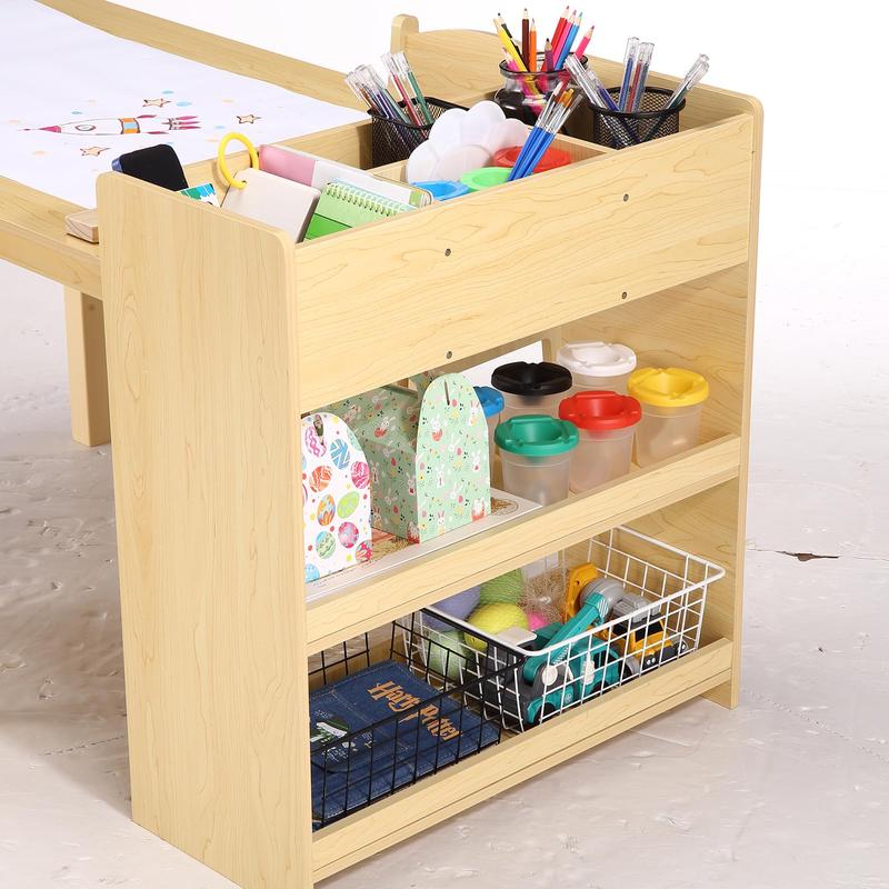 Garvee Art Table with 2 Chairs, Wooden Activity Desk for Toddlers with Large Storage Shelves, Perfect for Writing, Drawing, Nursery, Classroom, and Daycare Use