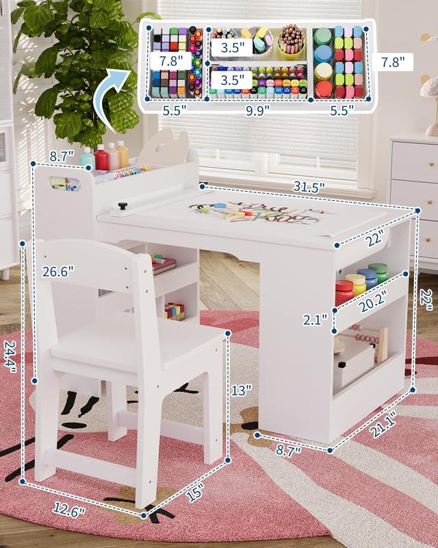 · Ample Storage for Kids' Things: With spacious open storage on both sides, this art table lets kids easily organize their favorite books, art things, and toys. Everything stays neatly and easily accessible, encouraging tidiness and fostering independence