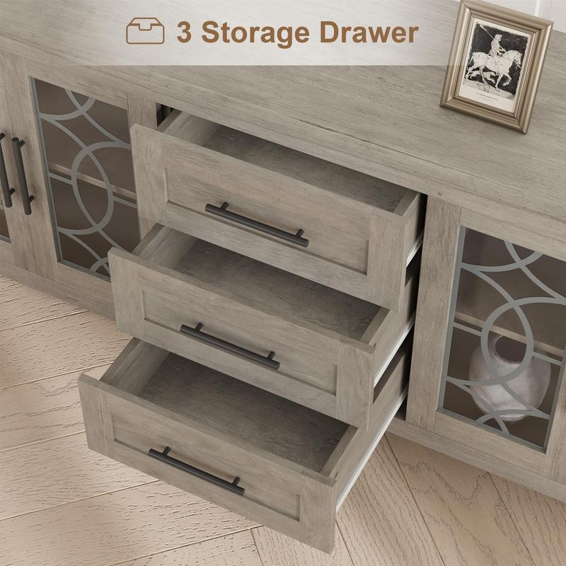 · Classic Dimensions and Features: Measuring 59.06" L x 15.75" W x 24.41" H, it fits TVs up to 65 inches and includes antiqued alloy handles and pre-installed cable management for a tidy setup.
