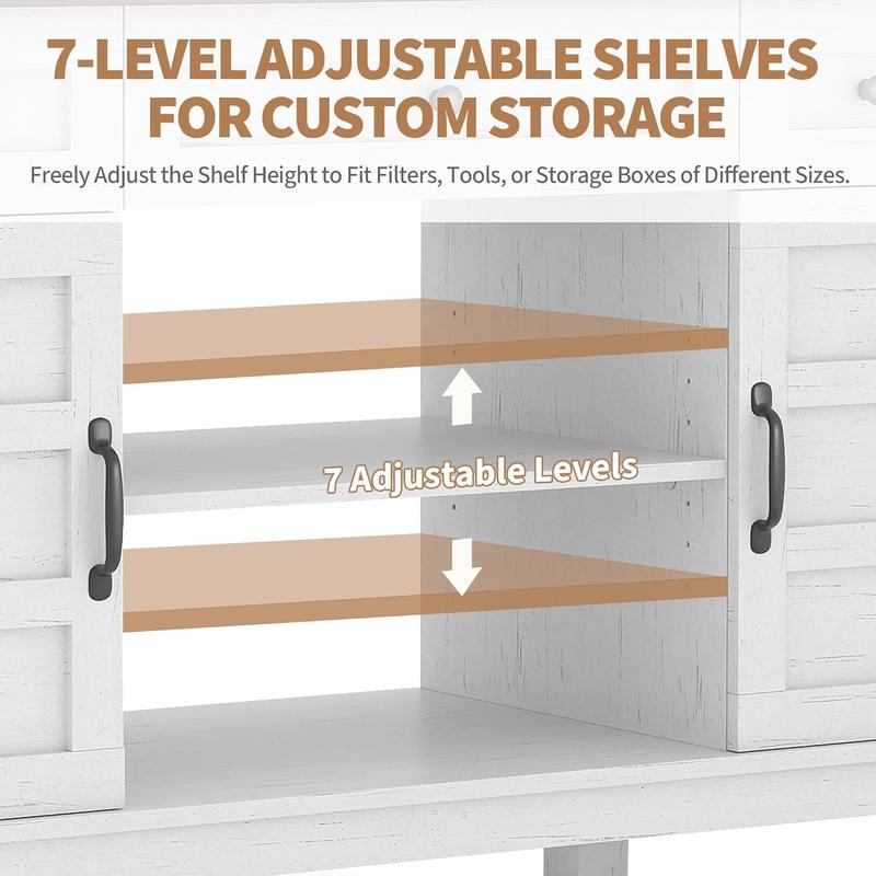 · 【Spacious Storage & Adjustable Shelves】Built with 3 drawers, 2 enclosed cabinets, and open middle compartments with 7-level adjustable shelves—providing ample space for fish food, cleaning tools, water pipes, nets, and other aquarium supplies