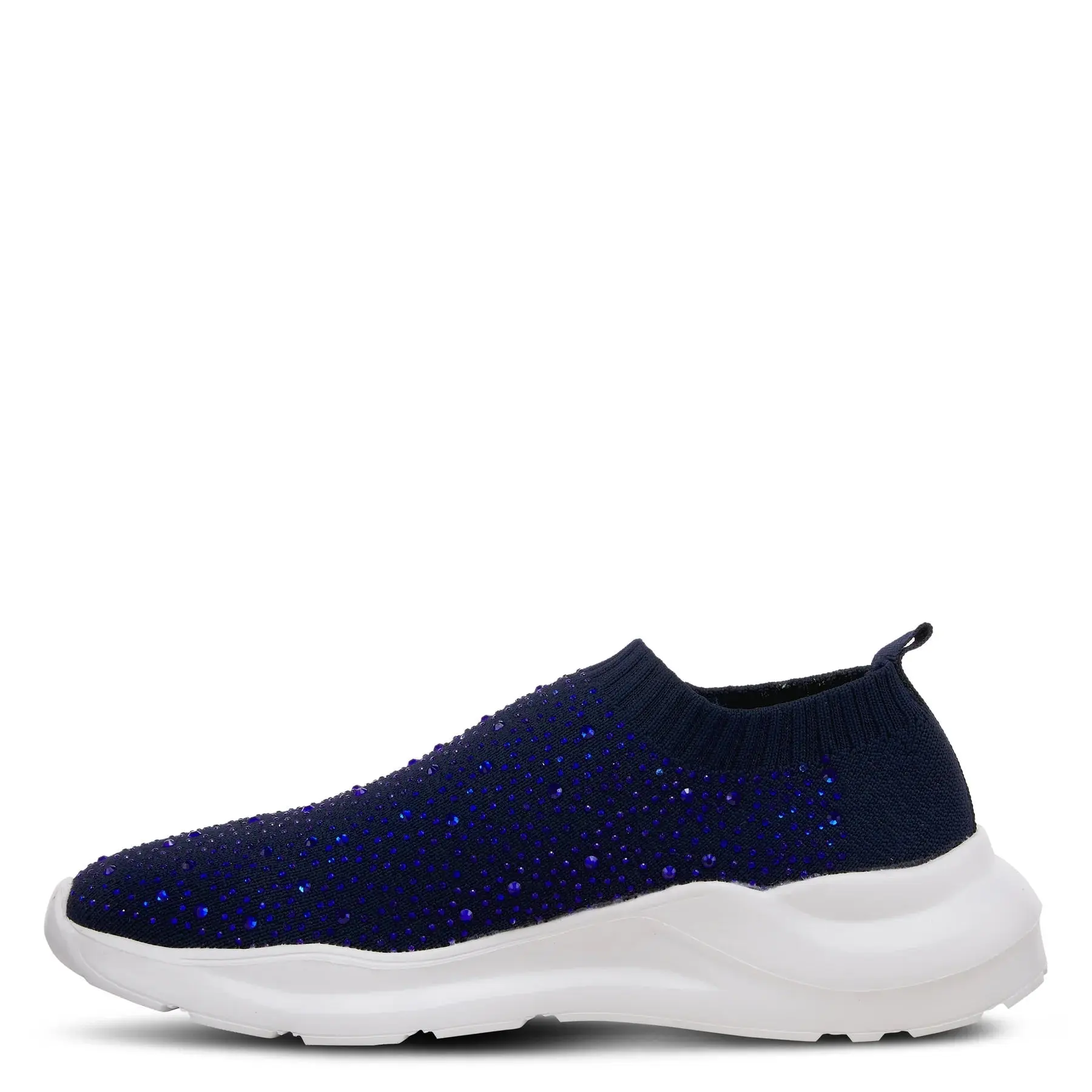 Stylish and trendy athleisure-inspired sock shoe featuring all over rhinestone design -Shock absorbing, durable and flexible unit outsole with decorative black spatter.