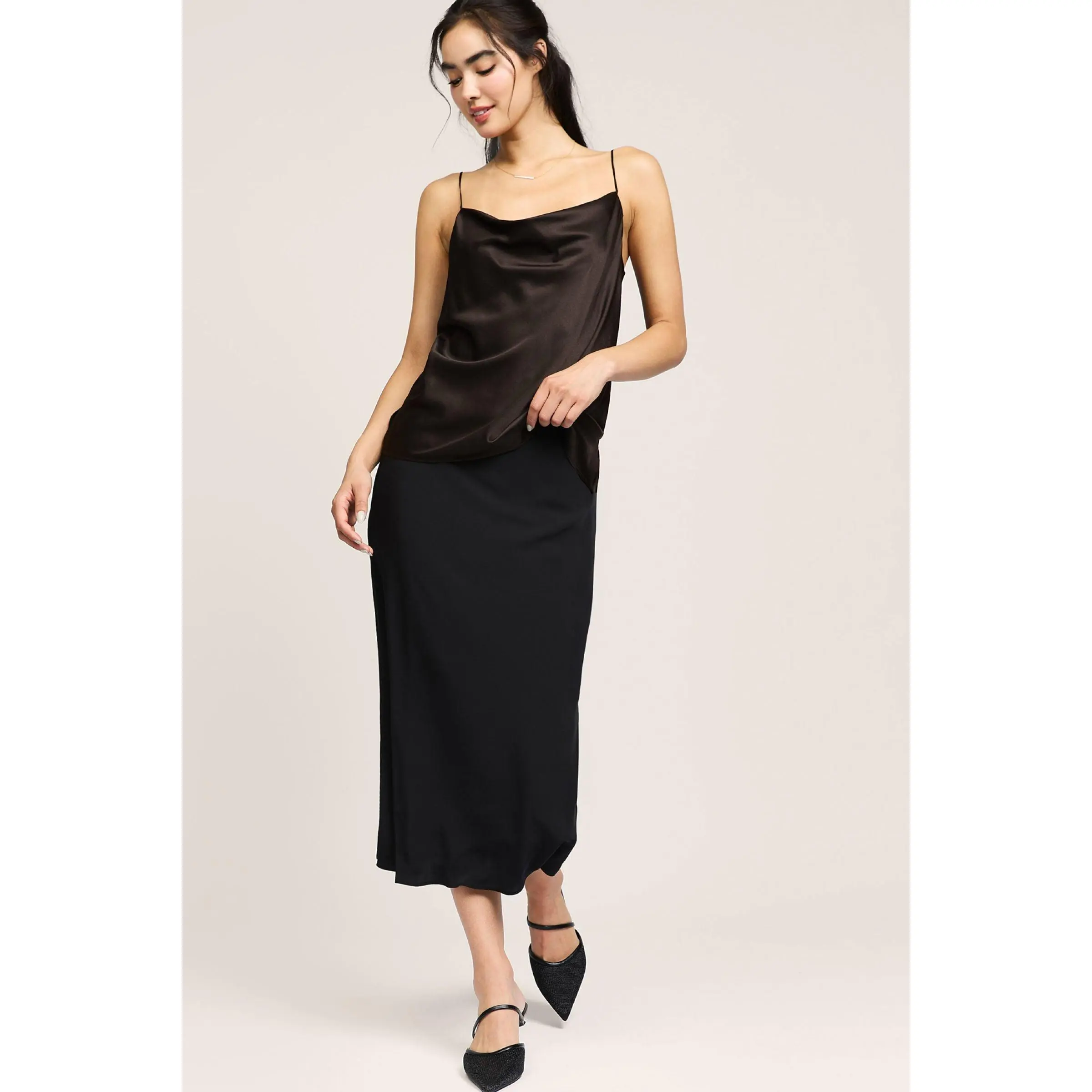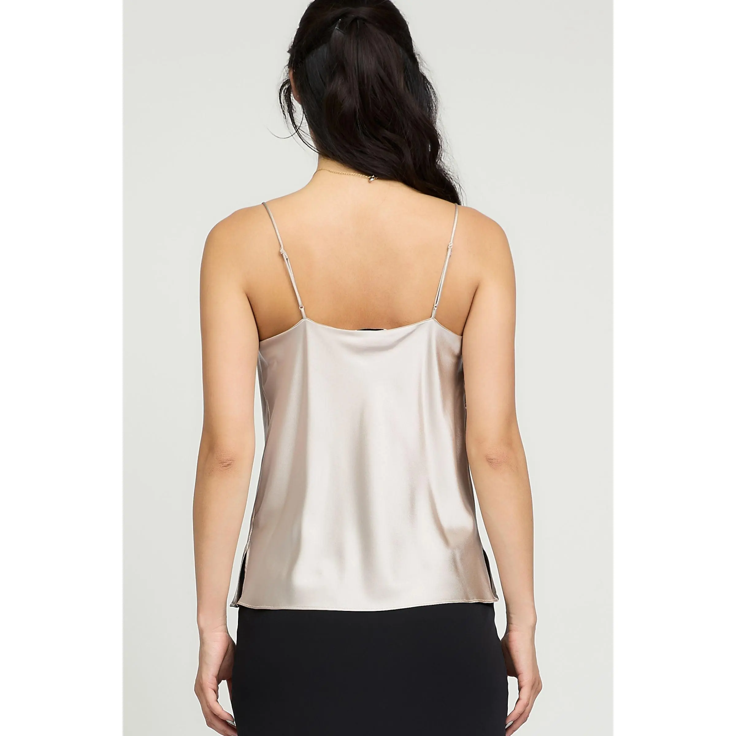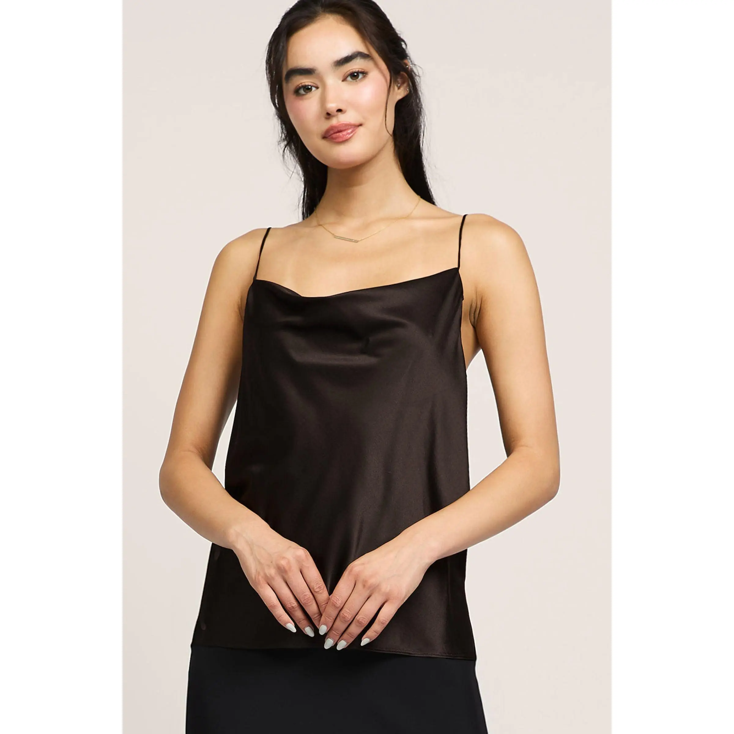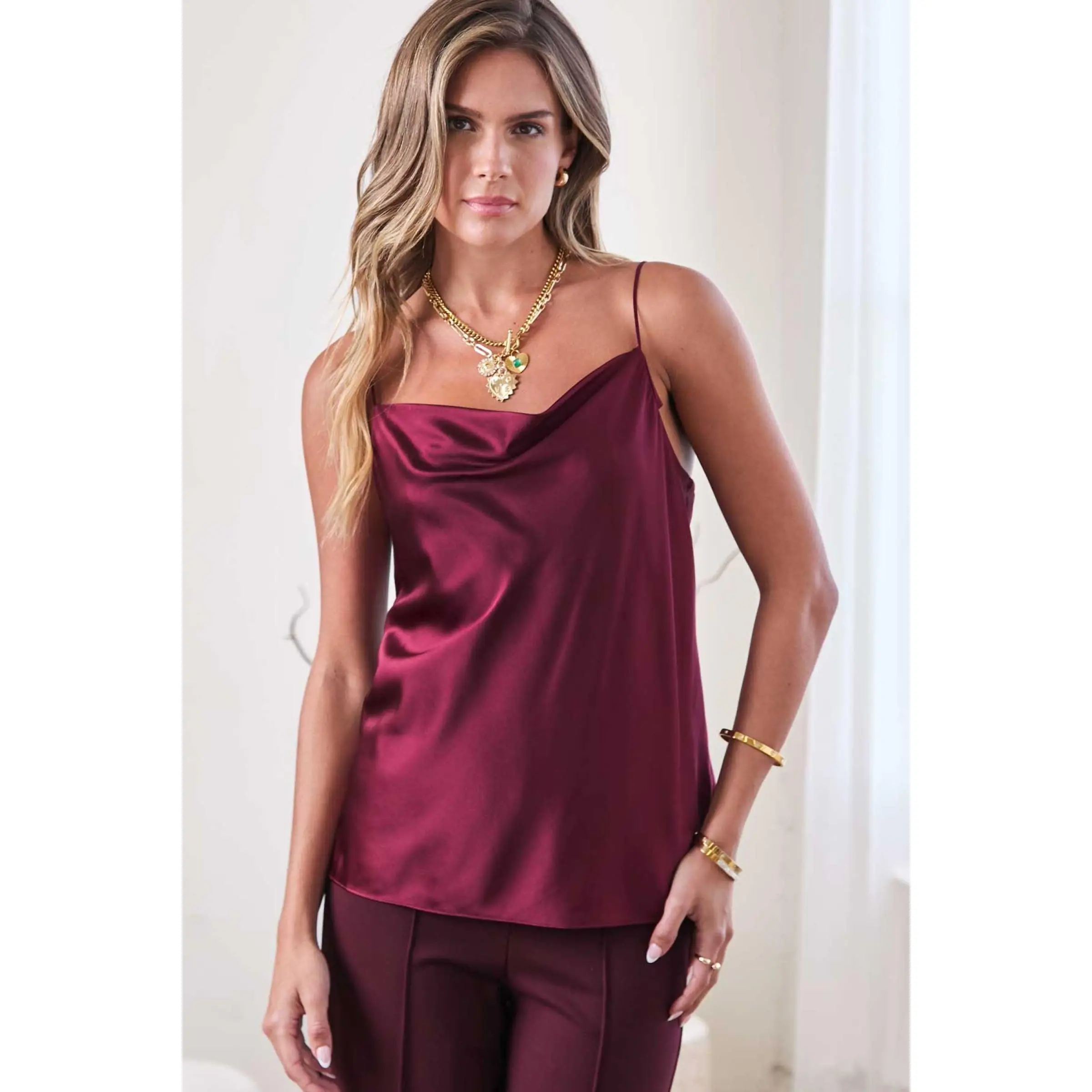 Crafted from 100% silk, this elegant cami features a graceful cowl neck and delicate spaghetti straps with adjustable length for a perfect fit. Its luxurious fabric drapes beautifully, offering both comfort and refined style ideal for layering or wearing alone on special occasions.