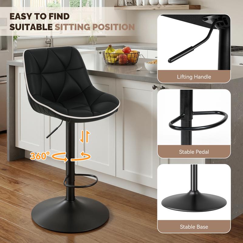 ·【ADJUSTABLE HEIGHT & 360° SWIVEL】 Equipped with a smooth gas lift mechanism, the seat height adjusts easily from counter height to bar height. The 360-degree swivel allows effortless movement and added convenience in everyday use.