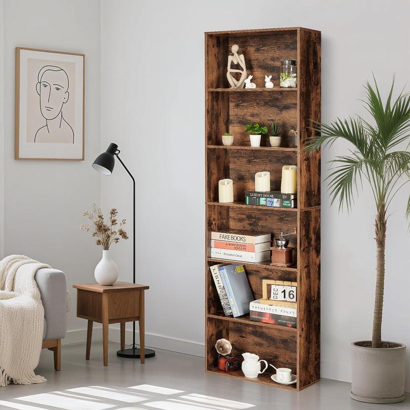 ·Bye-Bye Clutter, Hello Style With six roomy tiers, this bookshelf transforms clutter into curated displays. Store complete book series, magazines, work materials, and treasured collectibles in an organized, visually pleasing layout. Its thoughtful vertical profile saves valuable floor space, perfect for creating order in smaller rooms.