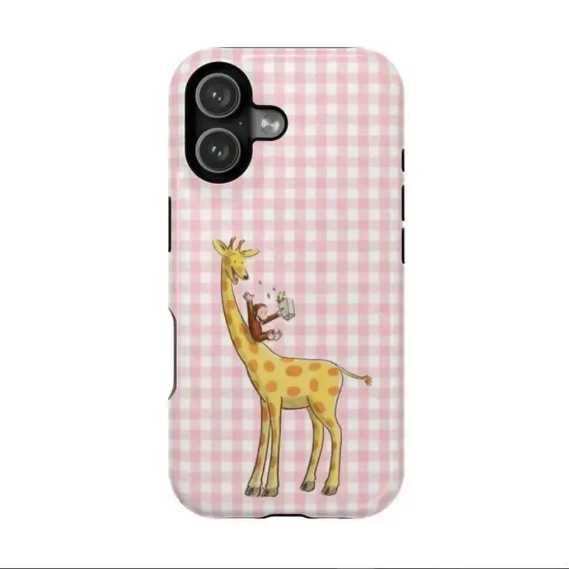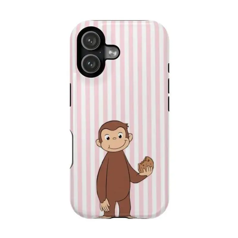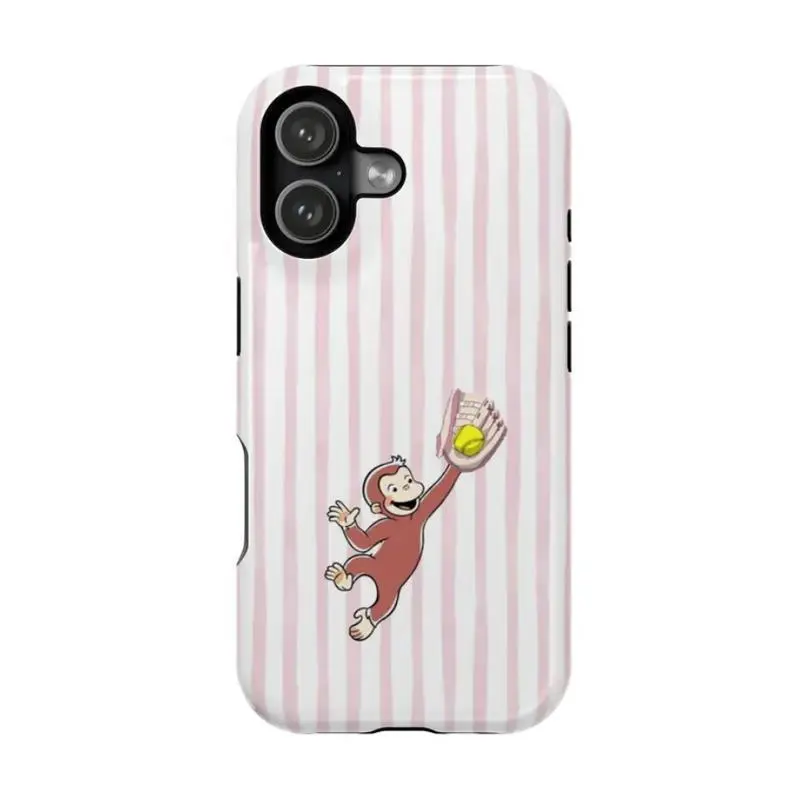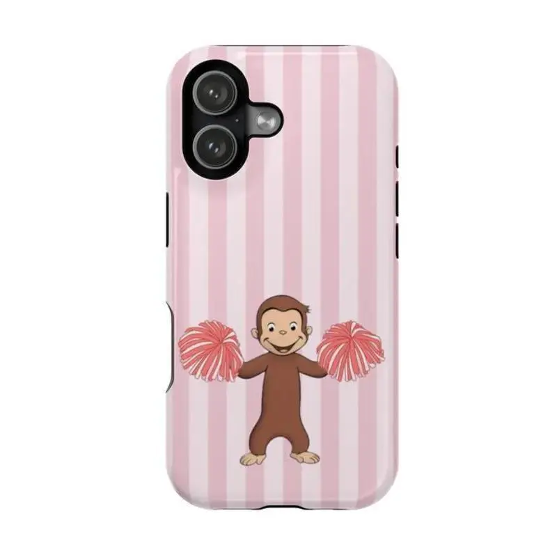 5. Pink Striped Curious George Phone Case – PBS Kids Monkey Cartoon Phone Cover with Cheerleader, Volleyball & Giraffe Design, Case Cover Compatible With iPhone 17 16 15 14 13 12 11 Pro Max X XS, Galaxy S25 S24 S23 S22 Ultra Durable Protection