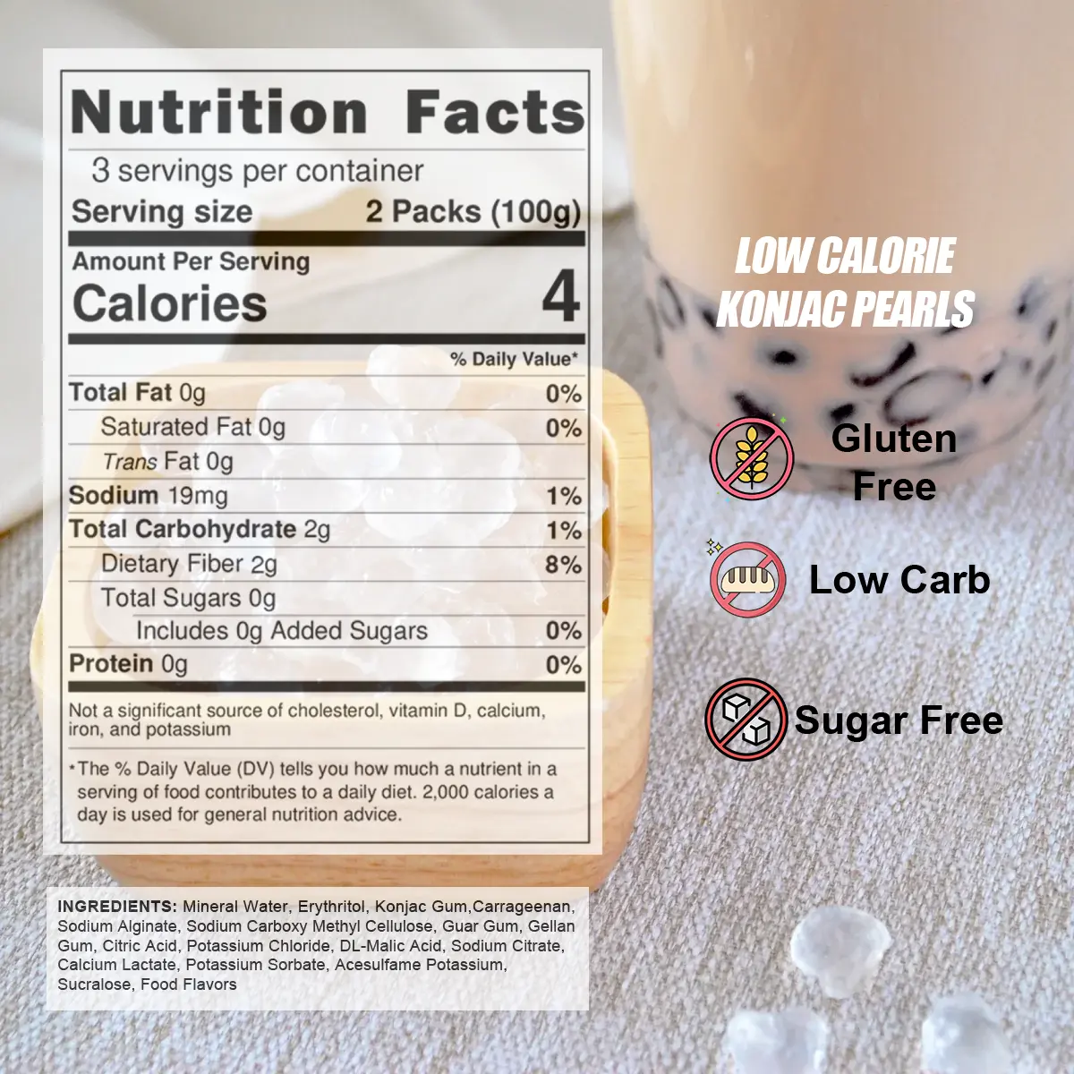 ·Low-Calorie Delight: Indulge in the goodness of konjac pearls with only a fraction of the calories found in traditional toppings. Enjoy the texture you love without the guilt.
