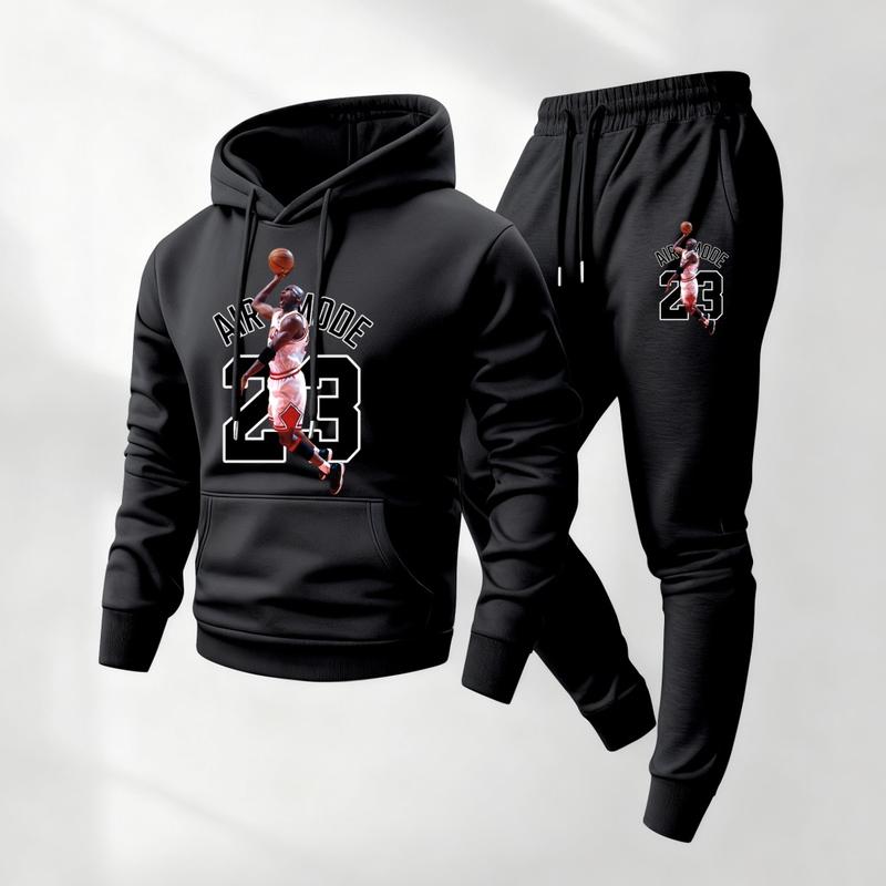 5. Men's NO.23 Player Printed Hoodie and Drawstring Sweatpants Set, Menswear, Casual Athletic Long Sleeve Hooded Jacket & Trousers for Fall & Winter, Men's Clothing for Daily Wear, Sportswear Indoor Outdoor, Tracksuit, Athleisure Summer Clothes