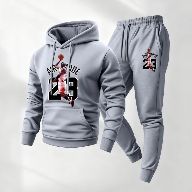 Men's NO.23 Player Printed Hoodie and Drawstring Sweatpants Set, Menswear, Casual Athletic Long Sleeve Hooded Jacket & Trousers for Fall & Winter, Men's Clothing for Daily Wear, Sportswear Indoor Outdoor, Tracksuit, Athleisure Summer Clothes