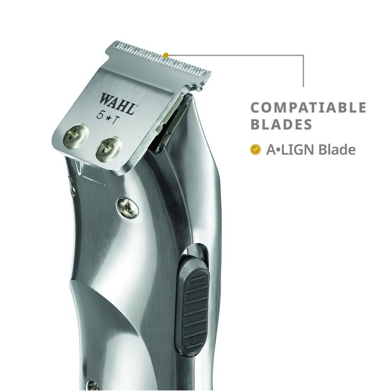 ·With a new thin, narrower T-blade, the Wahl 5 Star A•LIGN Trimmer will unlock greater visibility when lining, trimming, and detailing in the tightest areas of the face, beard and hairline.