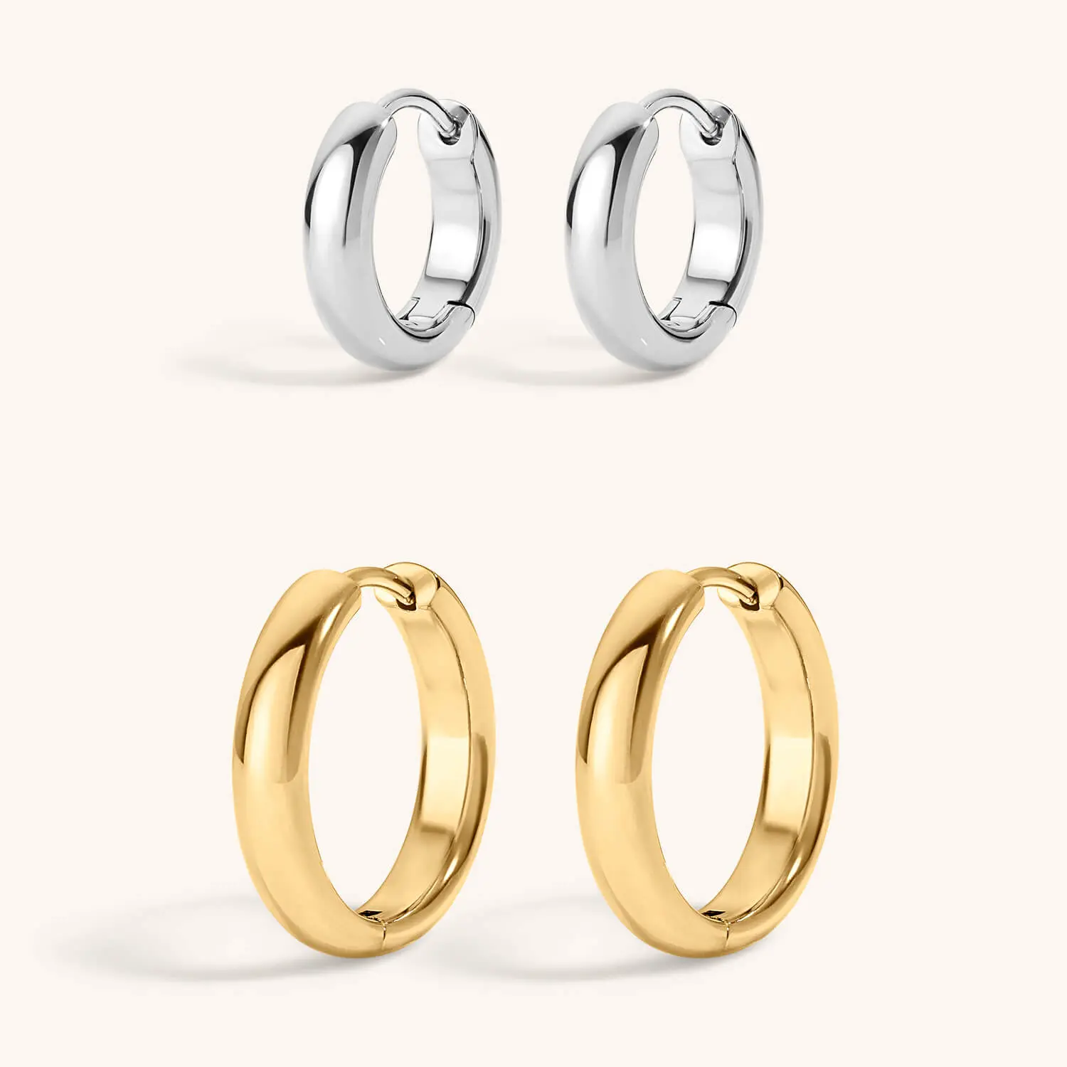 This duo includes Bold Hoops and Bold Huggie Hoops, standout essentials that add confident shape and effortless impact to any look.