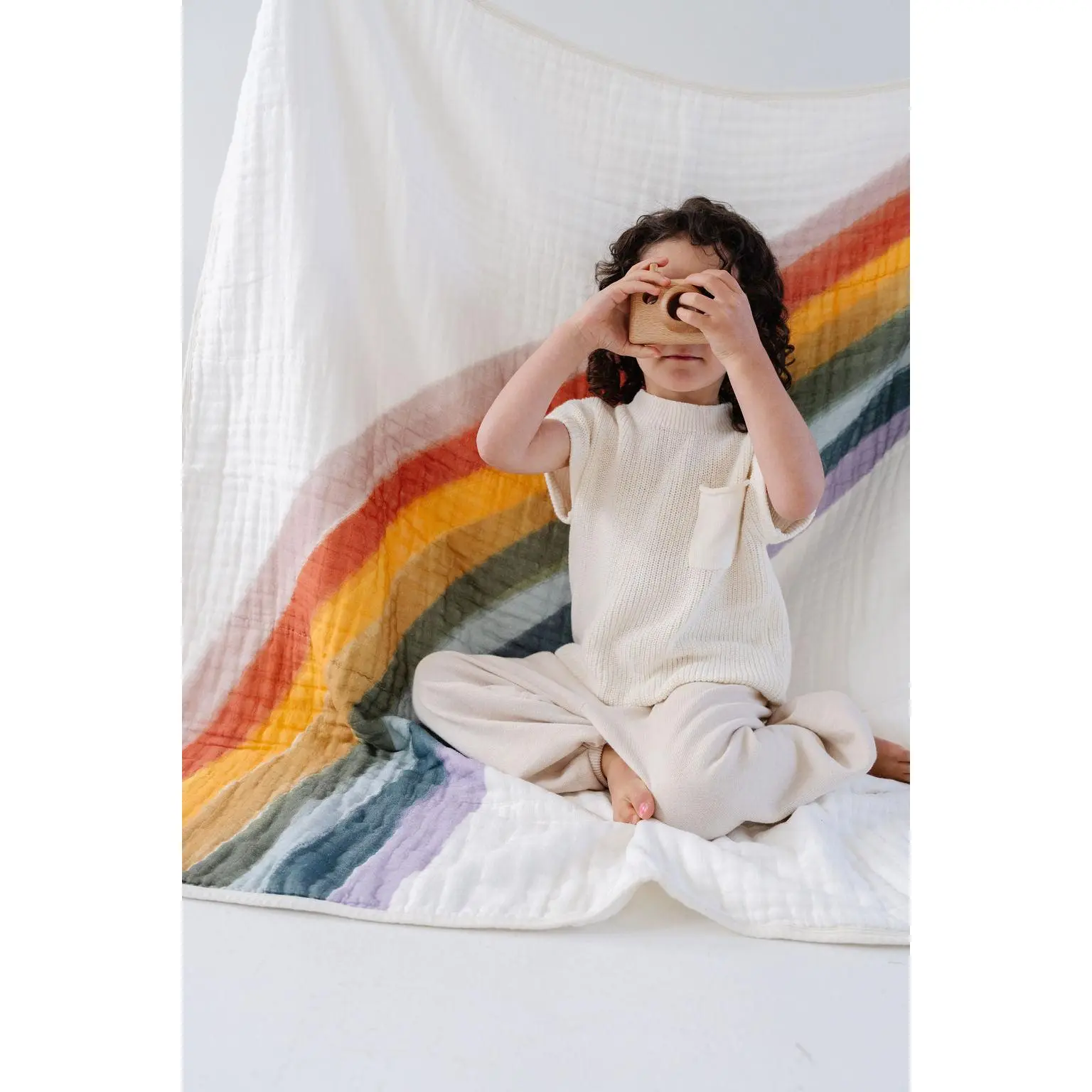 Brighten your baby’s world with the Rainbow Connection Quilt—a joyful, hand-painted design that celebrates color, creativity, and connection. This cheerful quilt is made from soft, breathable cotton muslin that keeps your little one cozy without overheating, making it a beautiful and practical favorite for every stage of childhood.