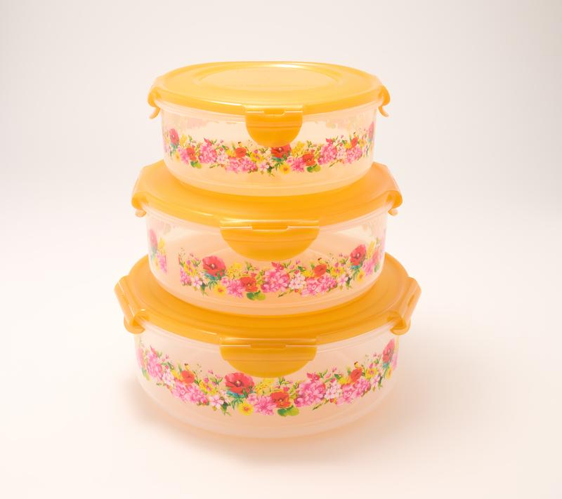 ·Clear polypropylene body with printed design; colored polypropylene lid construction