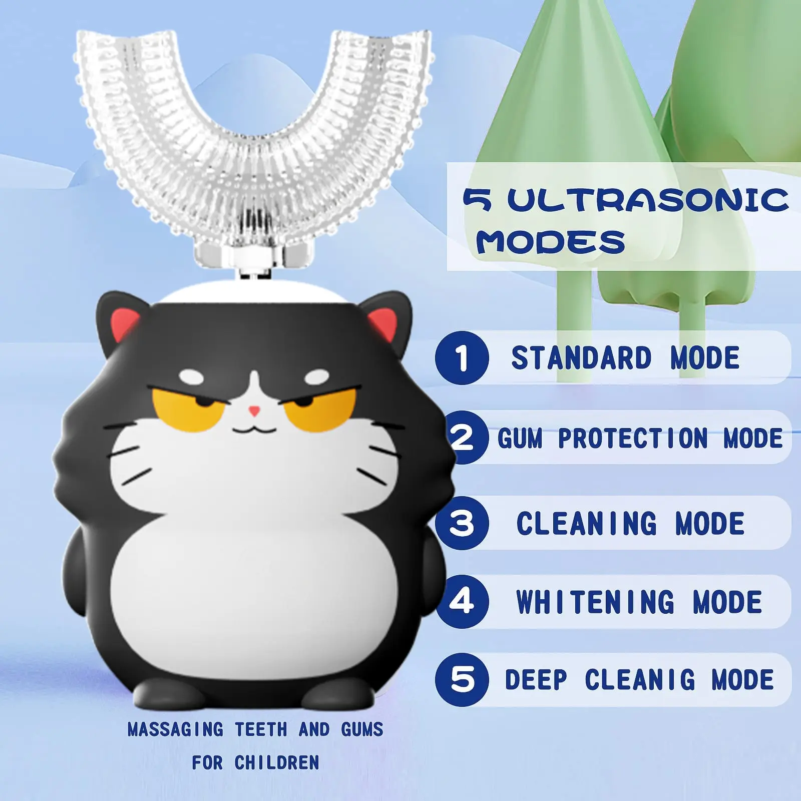 ·Full Mouth Cleaning: Our kids toothbrush according to the child's oral structure, the kids electric toothbrush is designed with U shaped brush head, which can clean your child's teeth 360° in all directions, without missing any small deciduous teeth