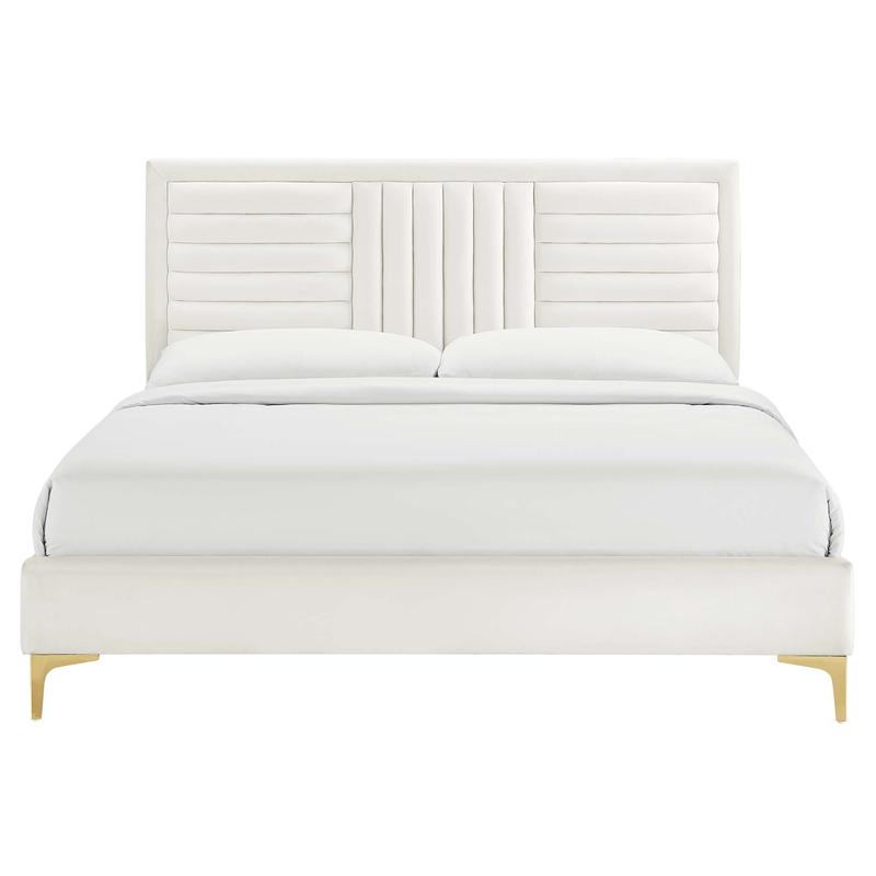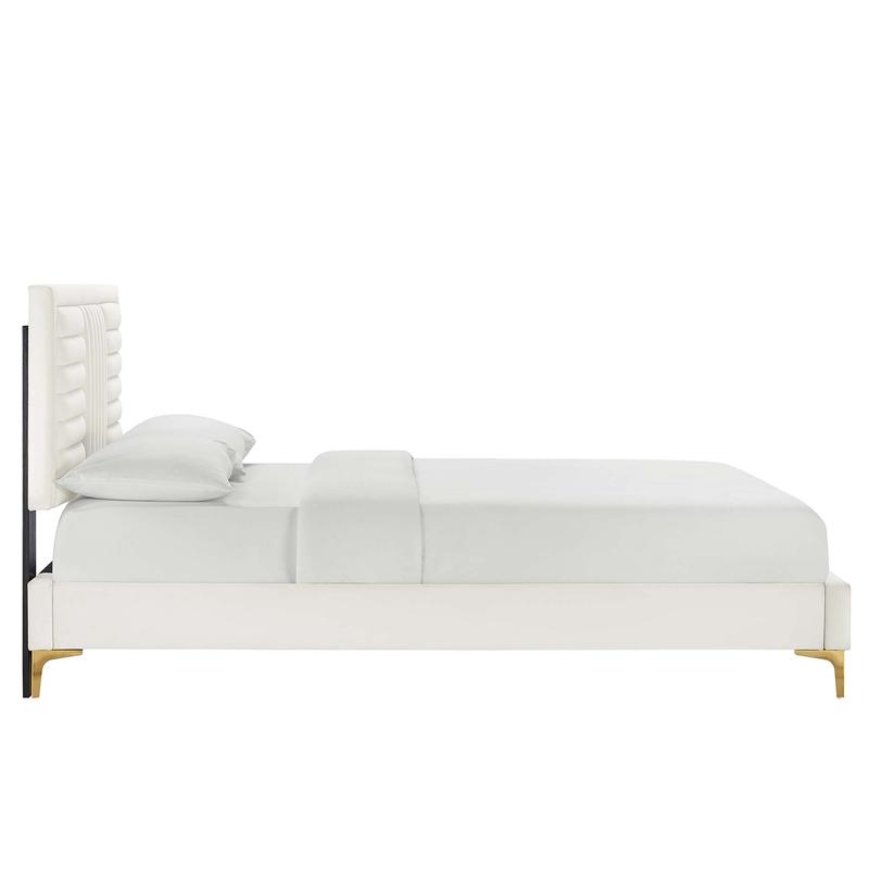 5. Modway Sofia Channel Tufted Performance Velvet Full Platform Bed in White