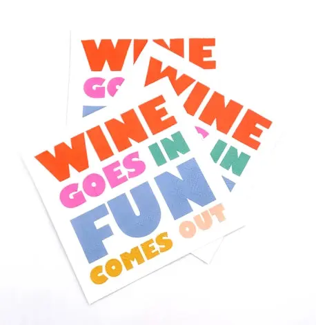 These colorful paper napkins are perfect for tabletop decoration and fun for cocktail parties. These party napkins are soft and absorbent and help in cleaning stains and spills with great ease. You can use these paper napkins for any gathering or party. The fun design on the napkins makes them a fit for any occasion. Great gift for any wine loving hostess, friend, family member or co worker.