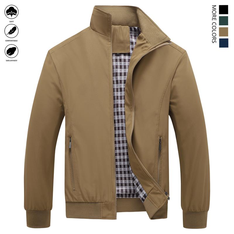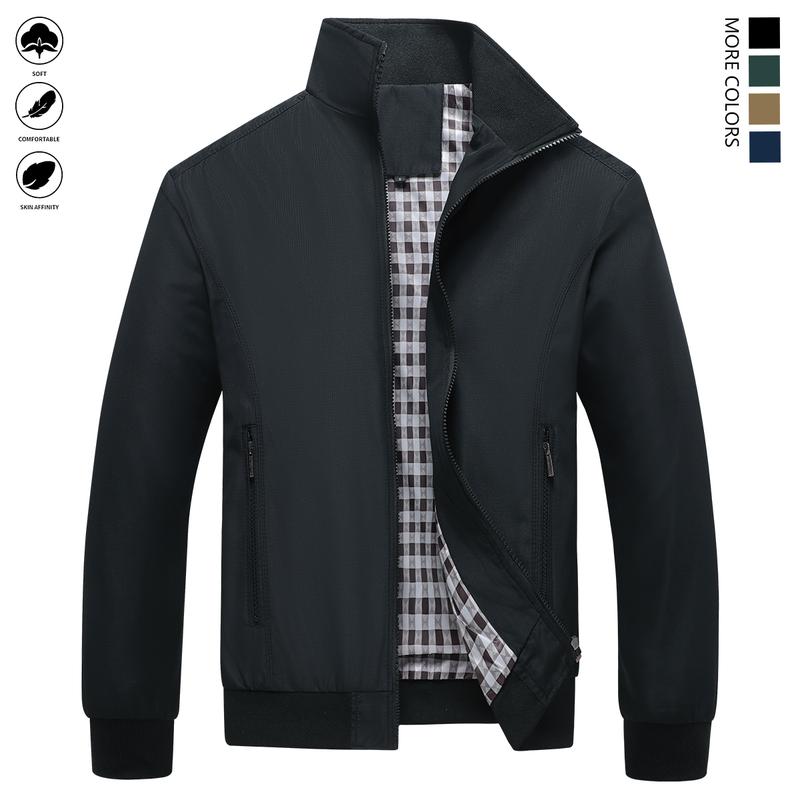 This men's lightweight polyester jacket is perfect for both formal and daily wear. It features a stand collar design, ensuring a professional look. The jacket includes a zipper pocket for convenience. Ideal for office and work settings, it offers a simple style that suits various occasions. The washable fabric makes it easy to care for.