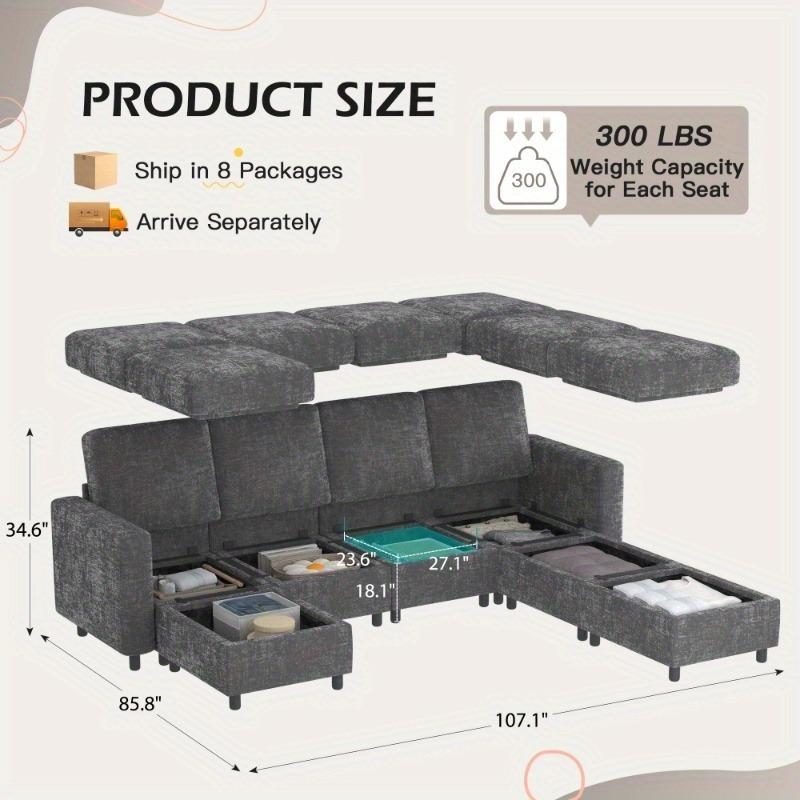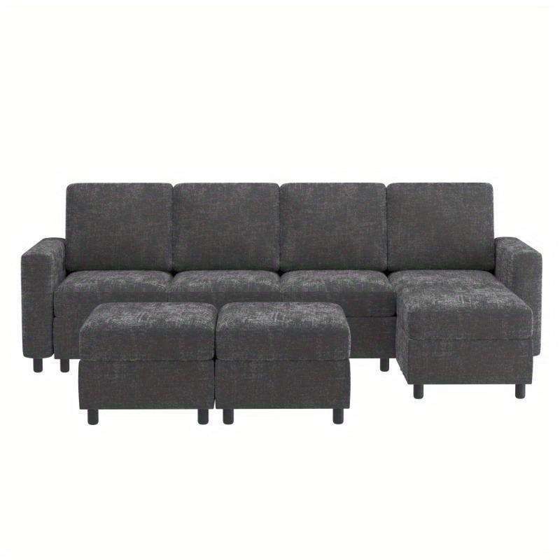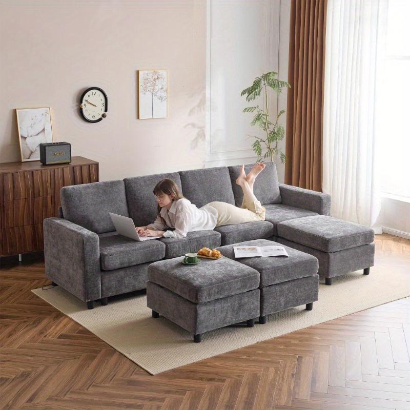 [Free Combination of Modular Sofa] Our modular sofas are divided into 3 main sections - single seat, ottoman and armrest, which can be easily adjusted and rearranged by yourself, such as the typical L-shape or U-shape sofas, as well as more creative arrangements. The 3 sections are individually movable and can be easily maneuvered through narrow corridors and doorways. When you move, the modular sectional sofa won't give you any trouble.