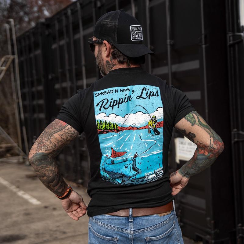 5. DIRTY COWBOY USA Spreadin' Hips & Rippin' Lips Fishing Club Men's T-Shirt