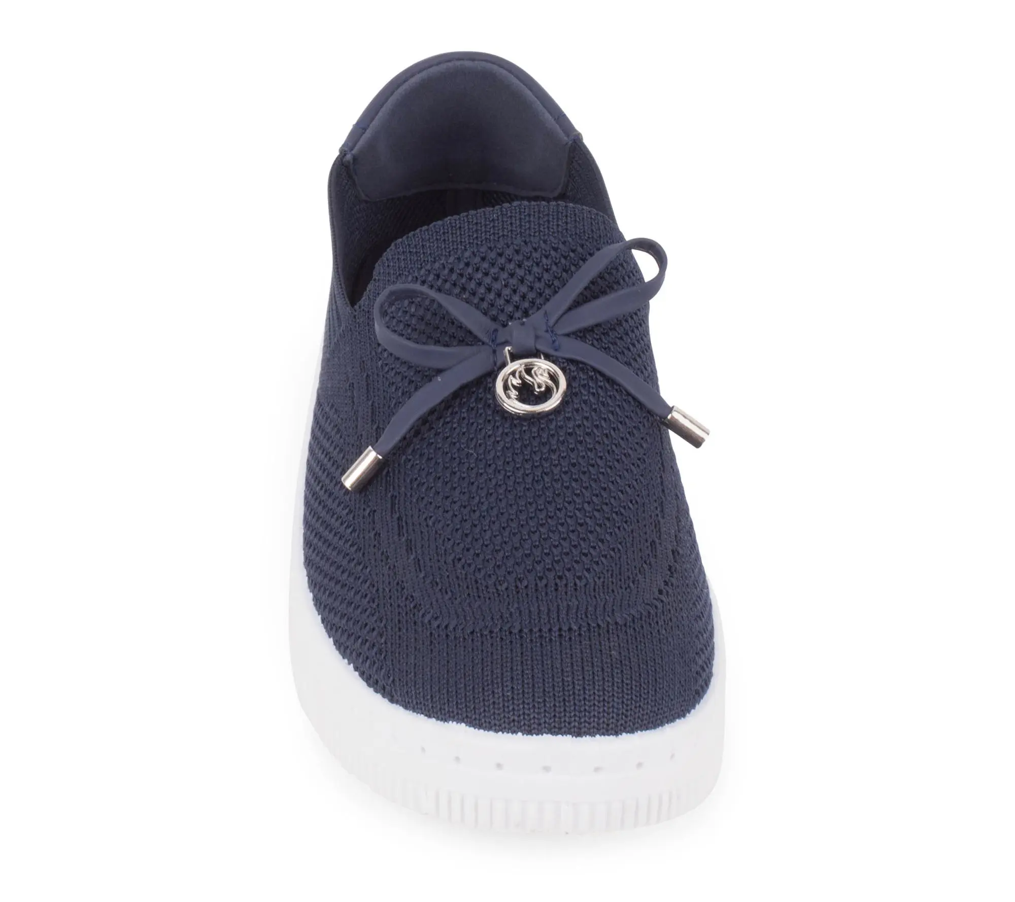 Breathable knit upper with slip-on closure and rounded toe